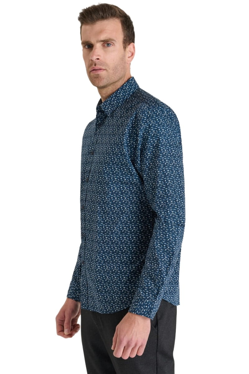 Das dezente Vogelmuster sorgt für einen besonderen Akzent, während der gerade Schnitt und Kentkragen klassischen Komfort bieten.