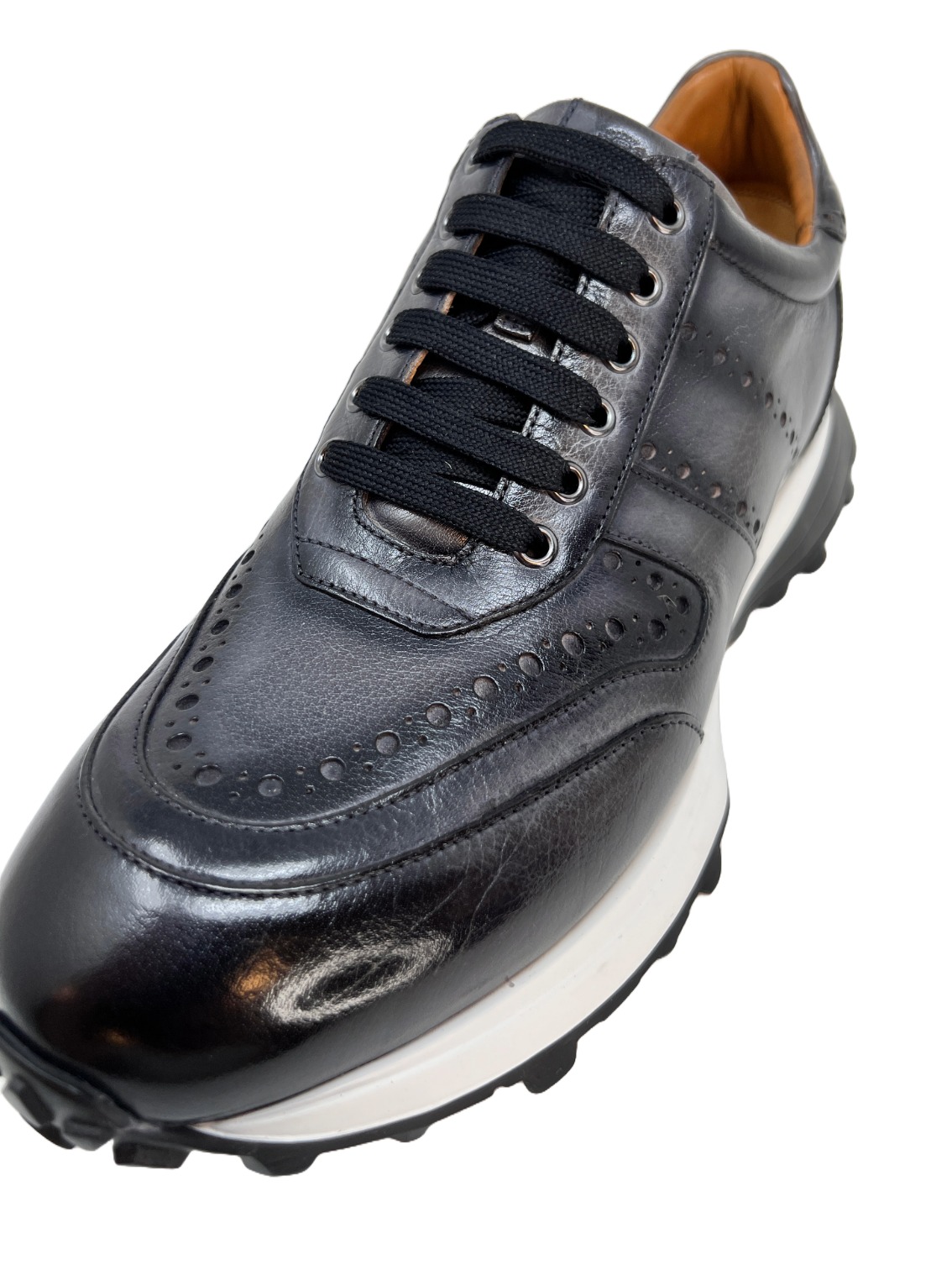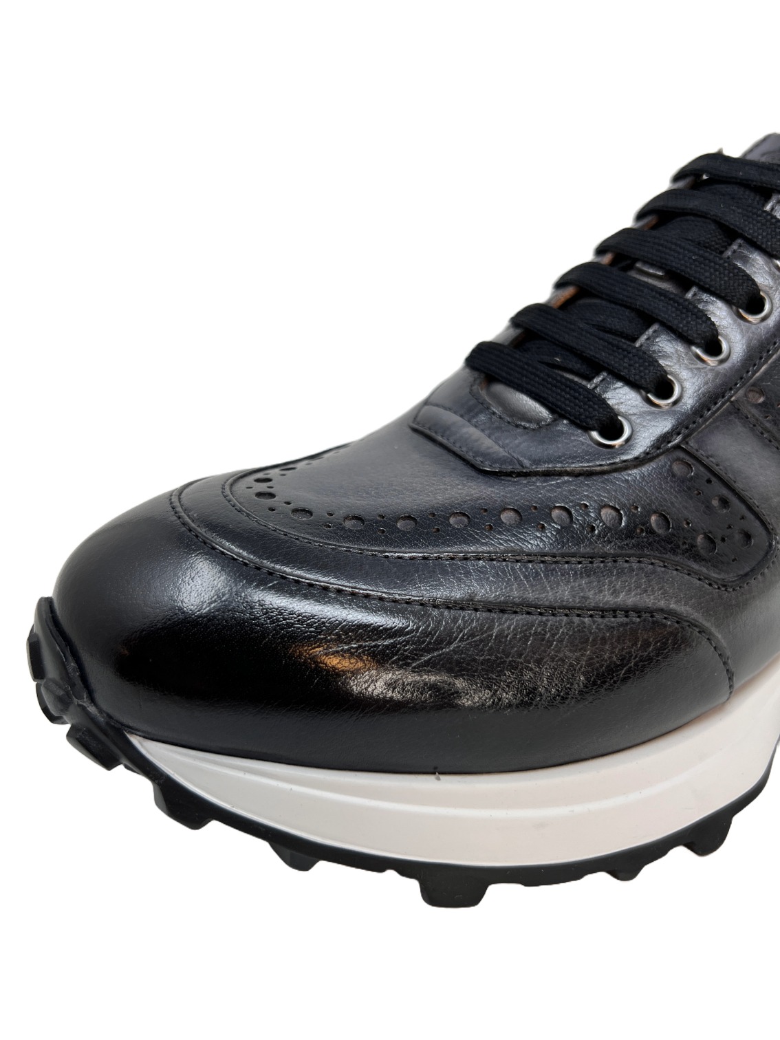 Innovativ und trendig sind diese handgefertigten Herrenschuhe in Schwarz aus Schafsleder.