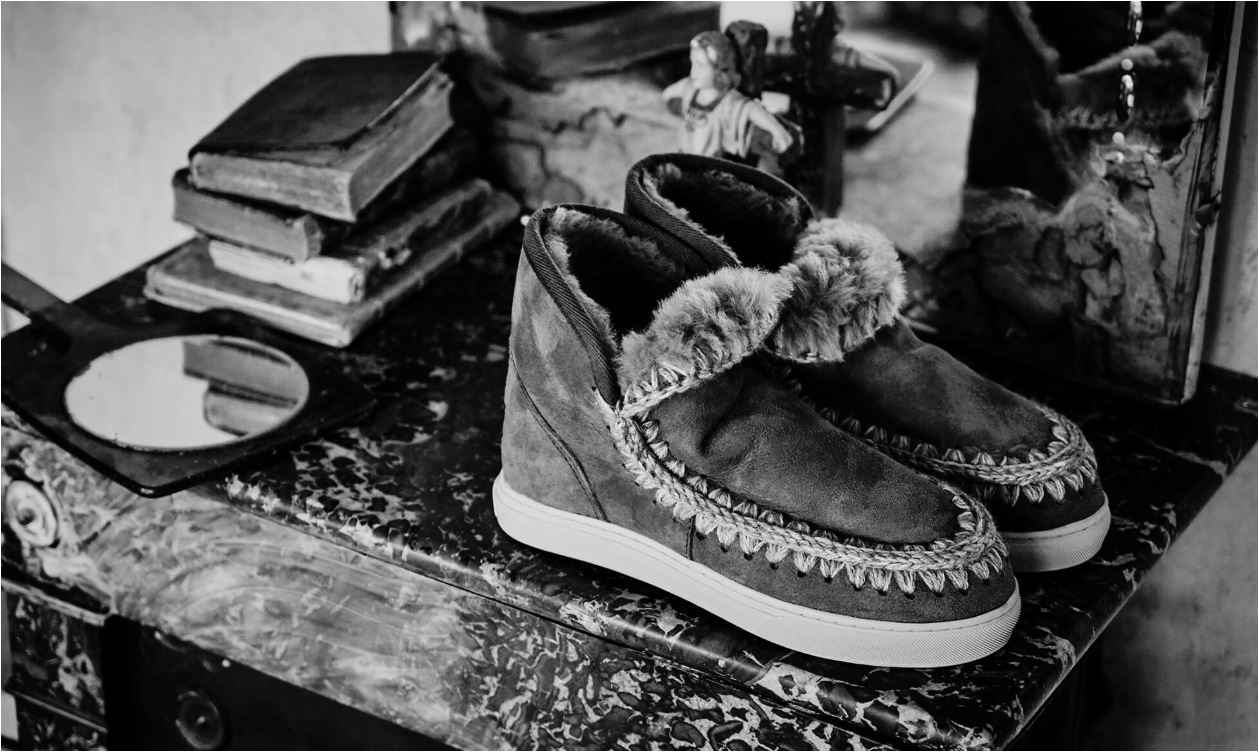 Der Eskimo Boot 18 cm Höhe von MOU zeichnet sich durch die detalierten Crocked Nähte aus. Ein ersklassiger Boot, hergestellt aus 100% gewachsem Merino Lammfell, so kuschelig wonnig warm mit ausdrucksvollem Style. Die Sohle ist eine Eva Leichtlaufsohle.