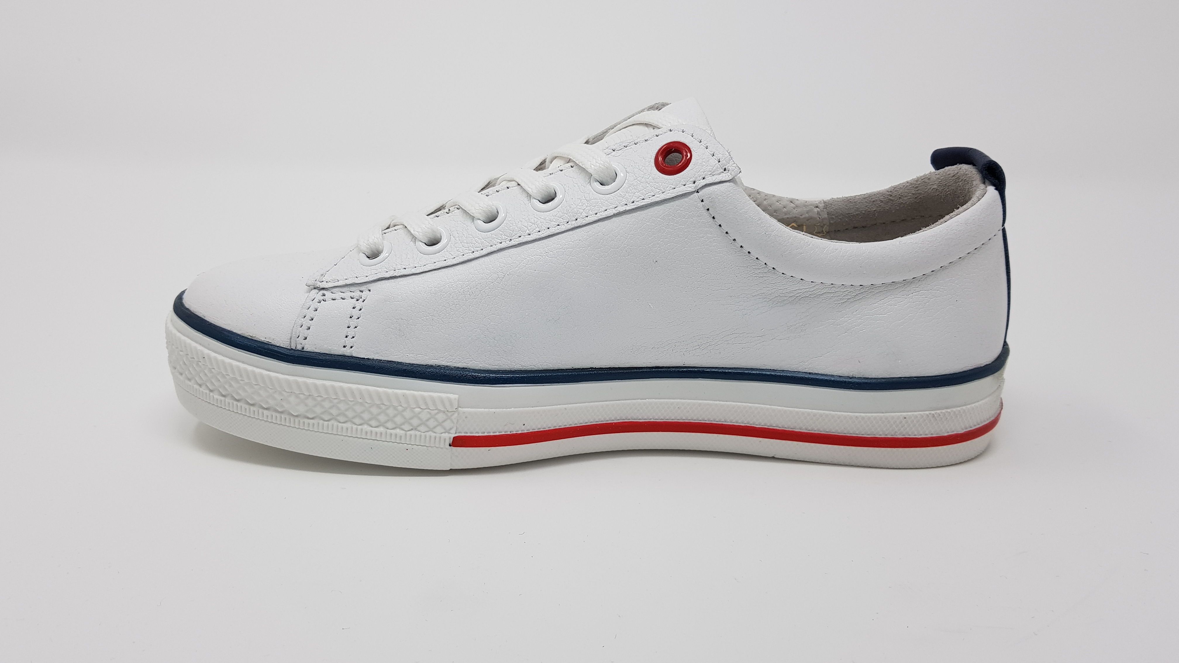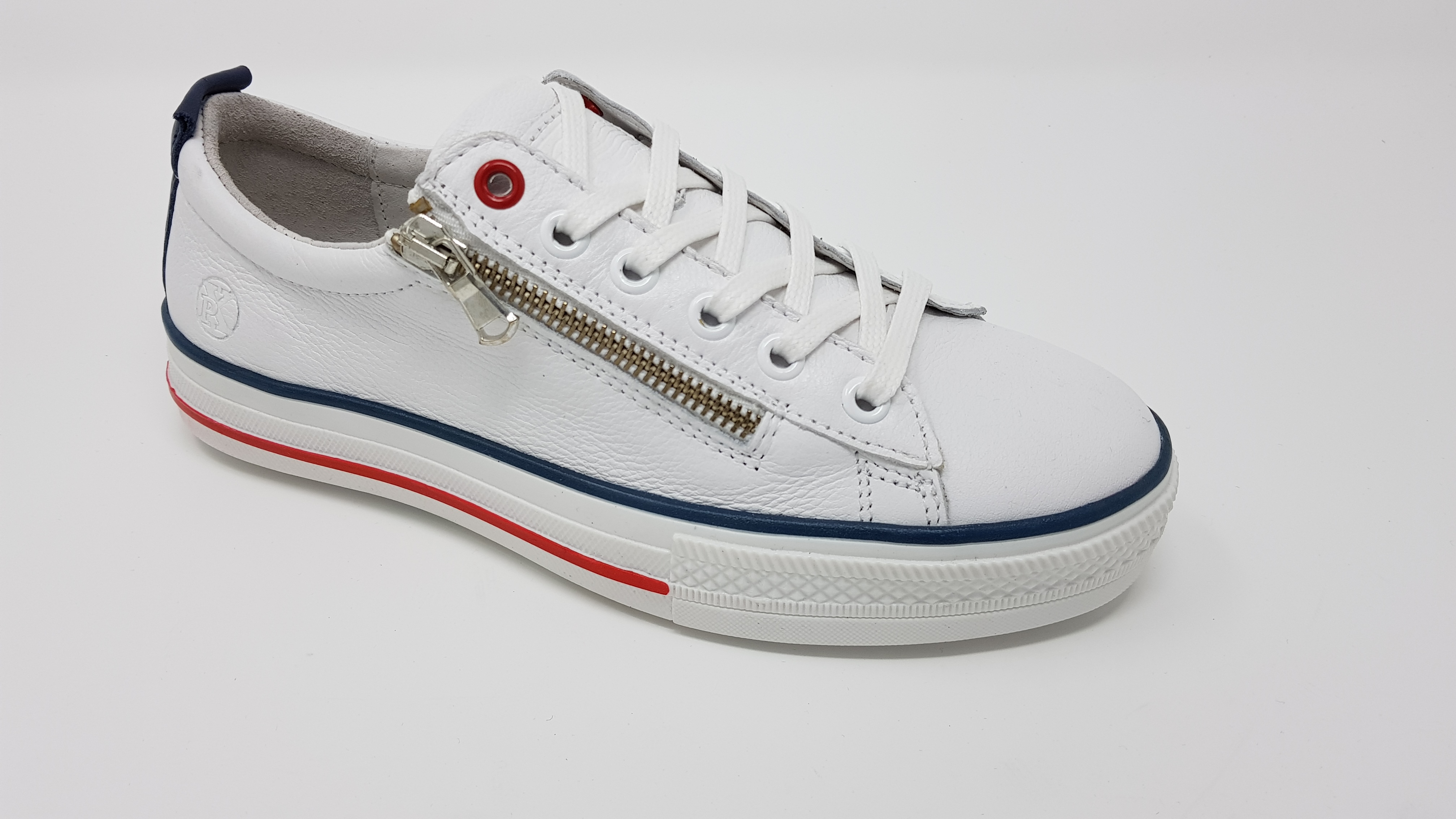 Der Fresh 01 von Post Xchange ist ein Sneaker aus Leder im Stil der Chucks und super bequemen Fußbett. Er hat seilich einen Reißverschluß, so daß du nur einmal passen schnürren mußt und dann hast du einen einfachen Einstieg.