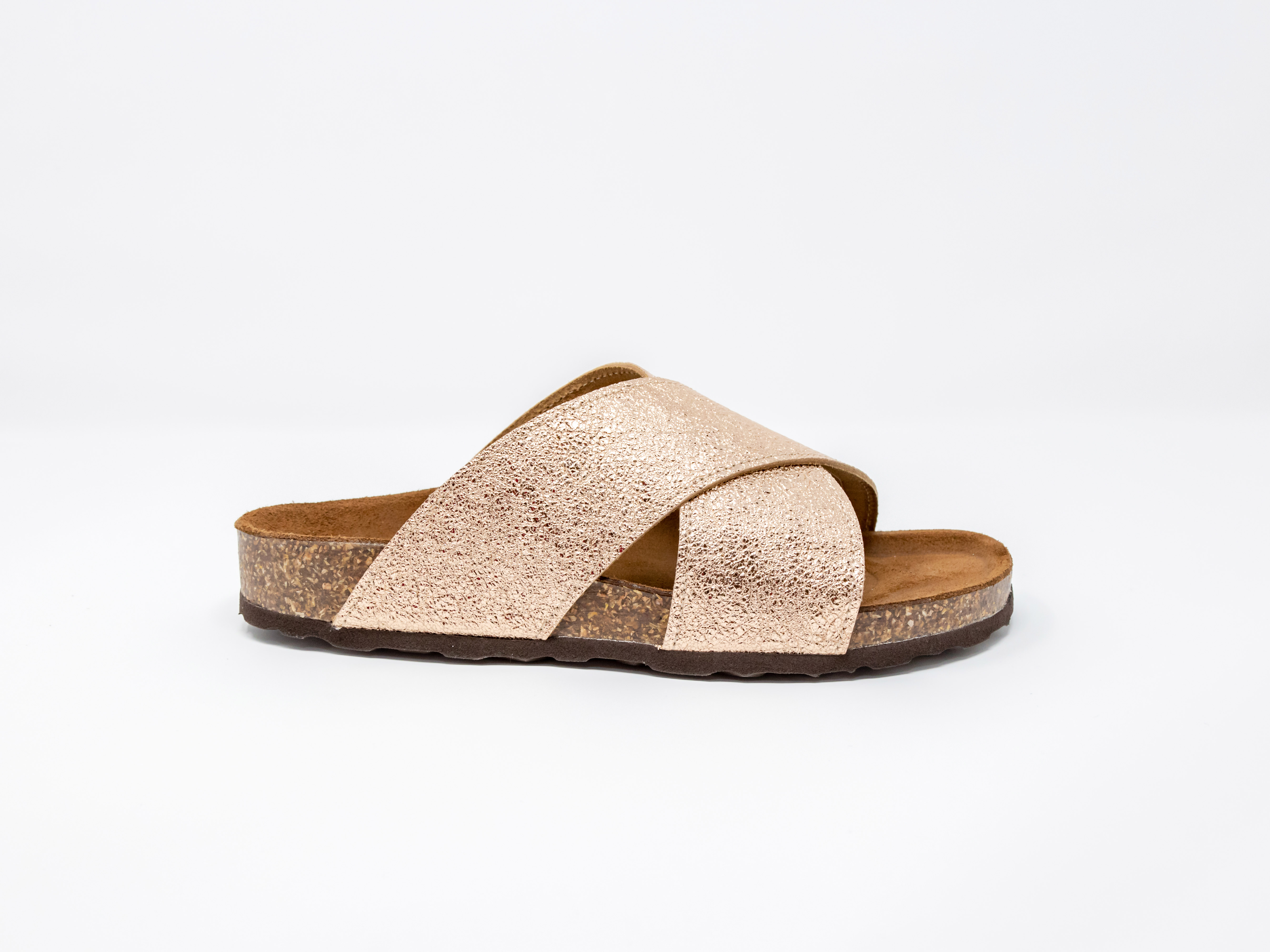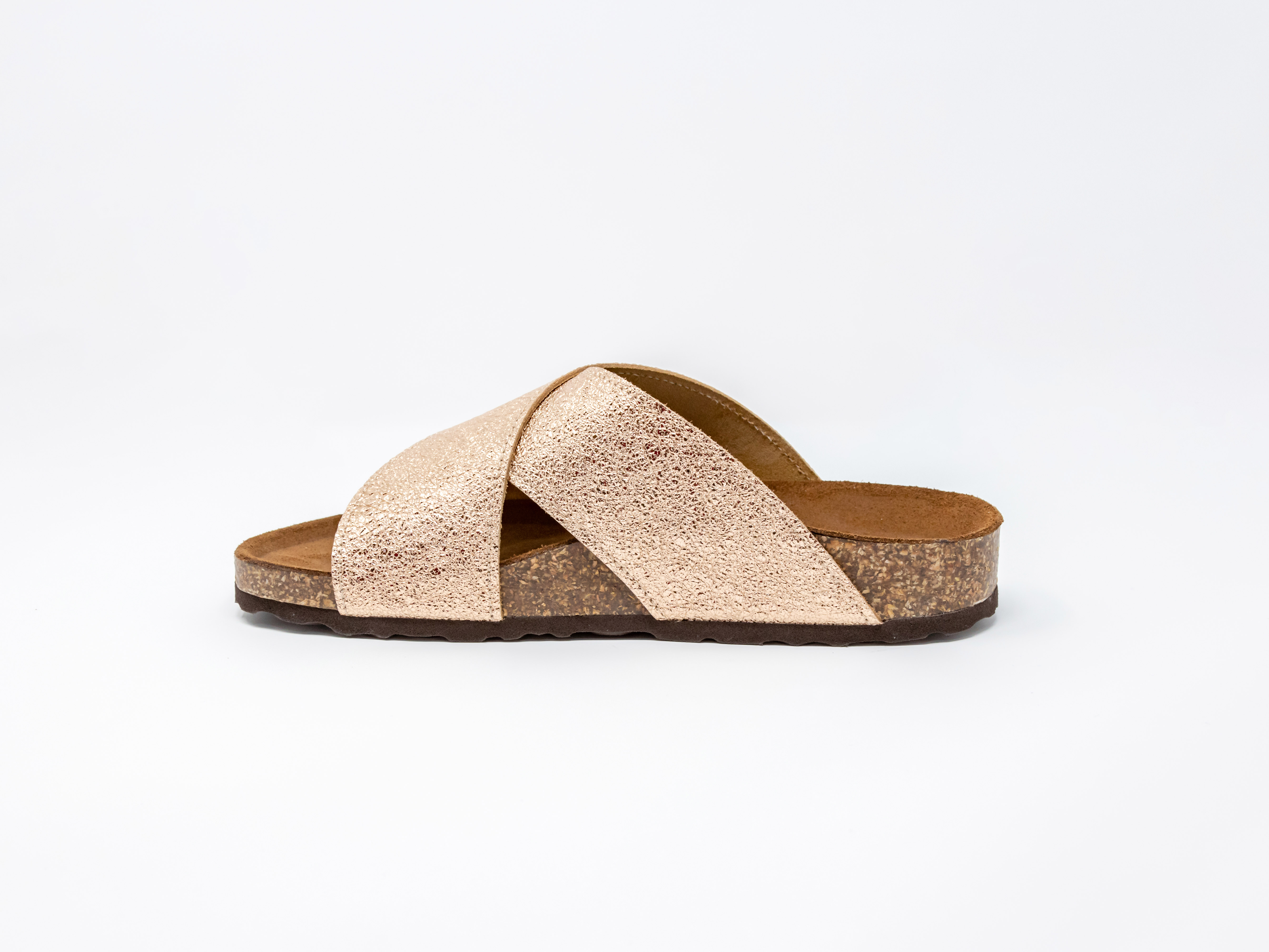 Lize 01 ist eine Pantolette aus Leder in einem Korkbett. Die glänzende Beschichtung macht den Slipper richtig edel. Trag ihn zu Jeans oder Kleid oder auch zum Jogger.