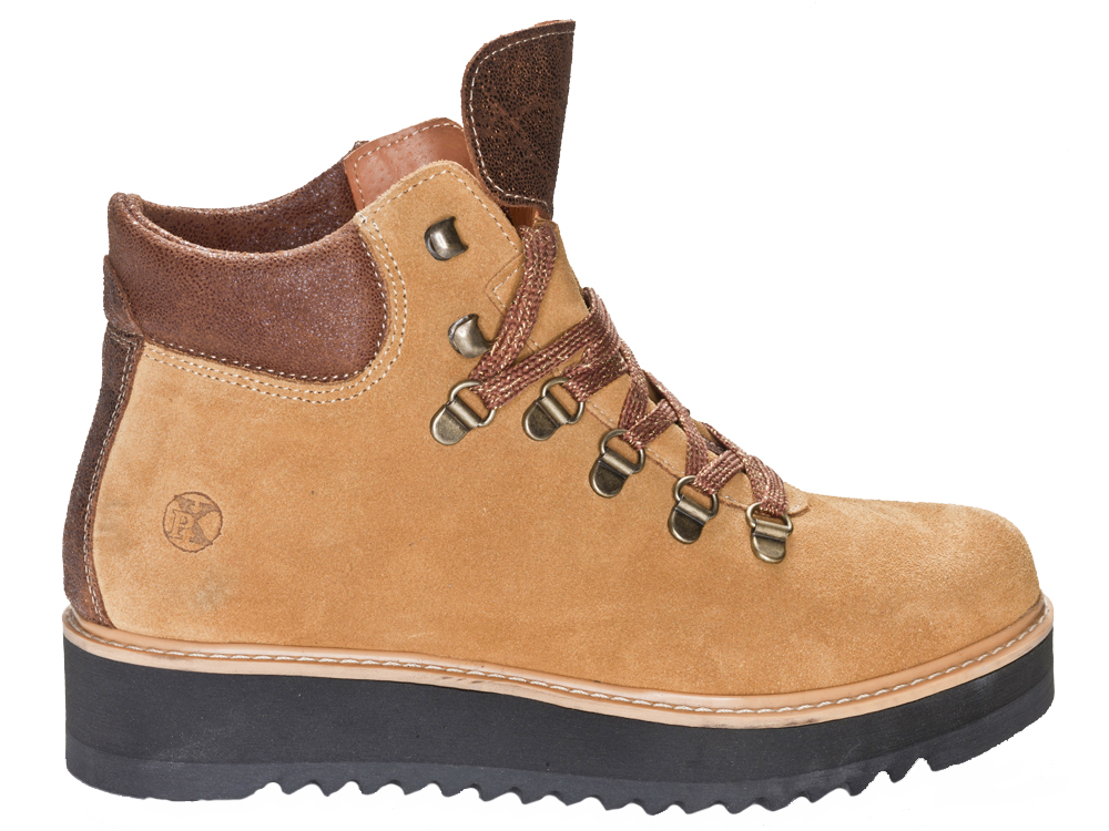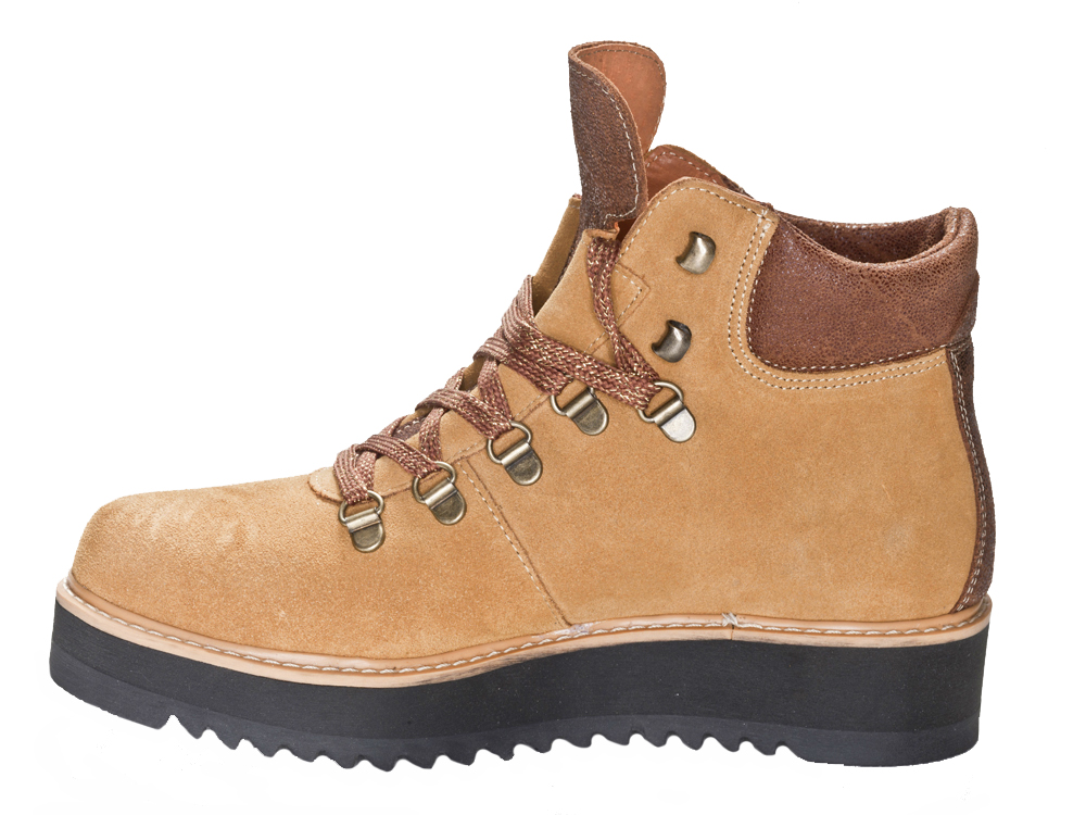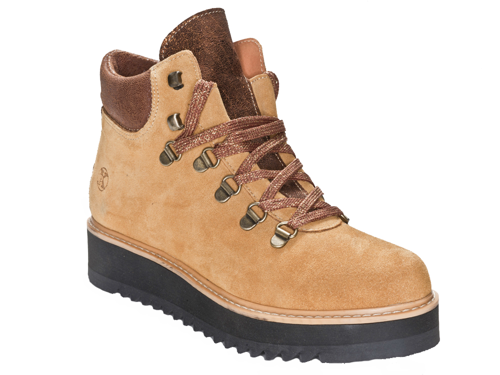 Der Maggie 01 ist ein Schnürrer mit einem Look vom femininen Wanderschuh. Es ist ein Schnürrschuh aus Velourleder mit dicker, robuster Sohle.