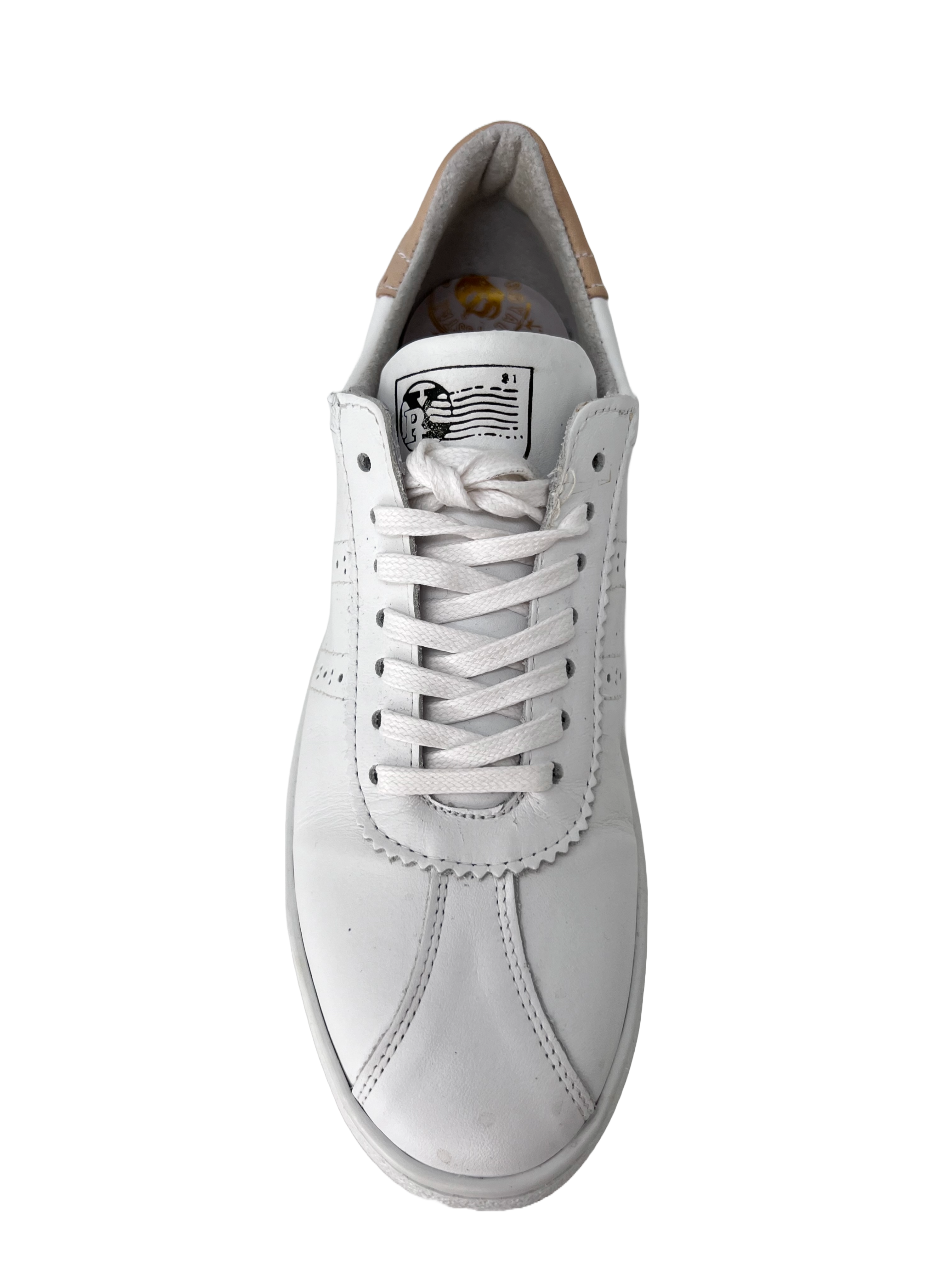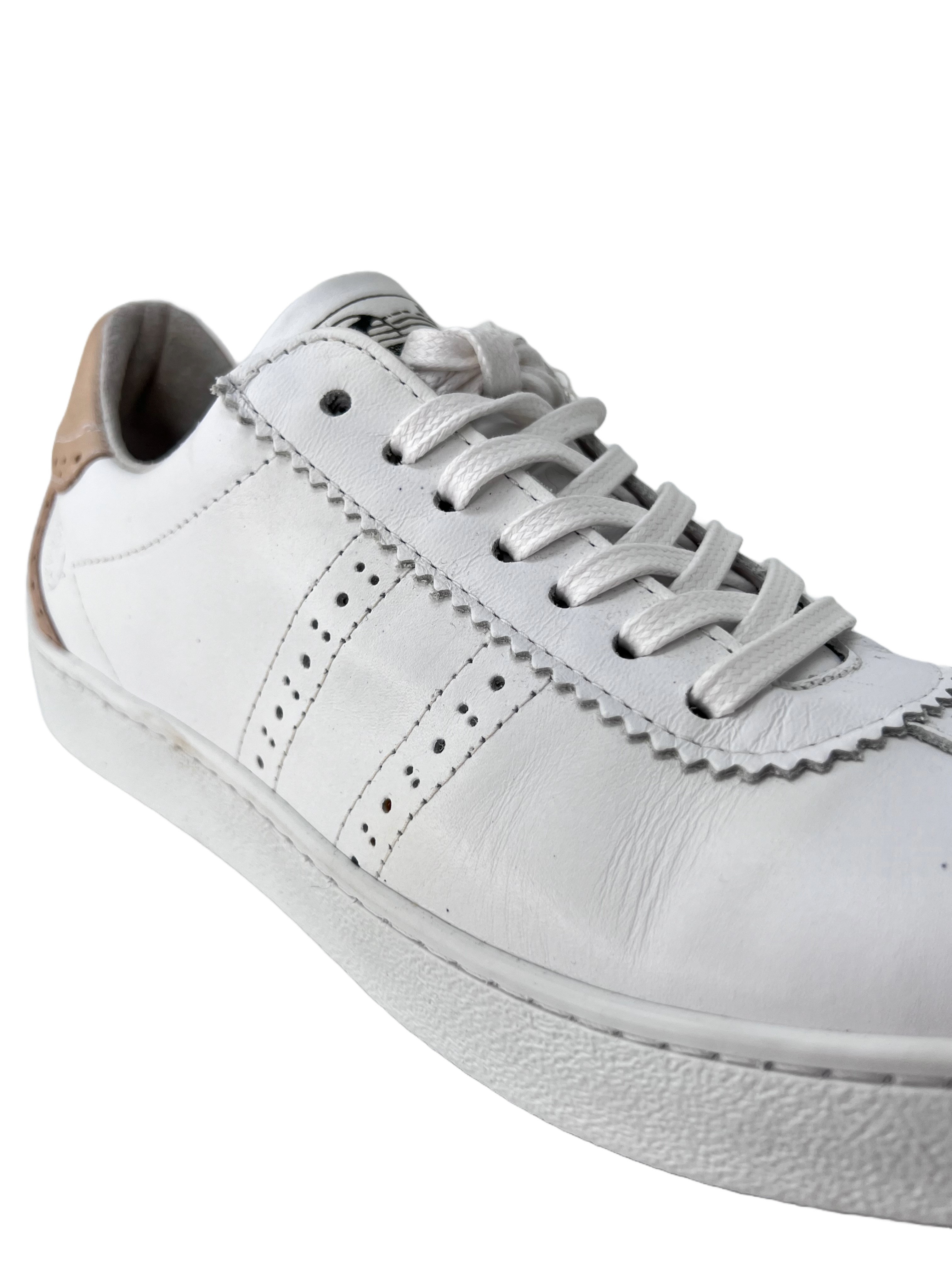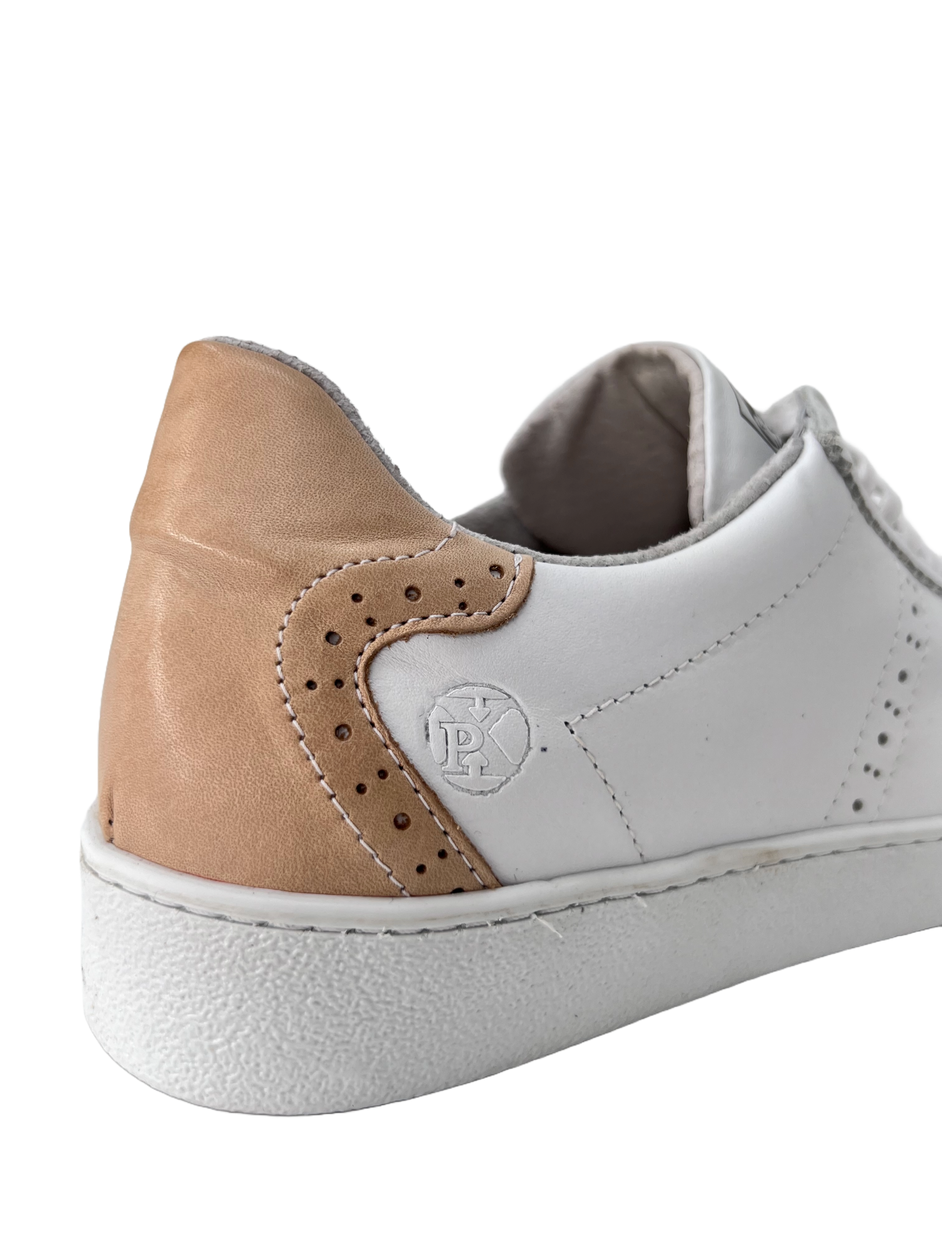Der Micha 40 ist ein Sneaker aus Leder mit Budapester Look. Er ist aus Glatt Leder gefertigt und hat an der Ferse einen congac-farbenen Abschluß. Das wertet ihn noch mal richtig auf.