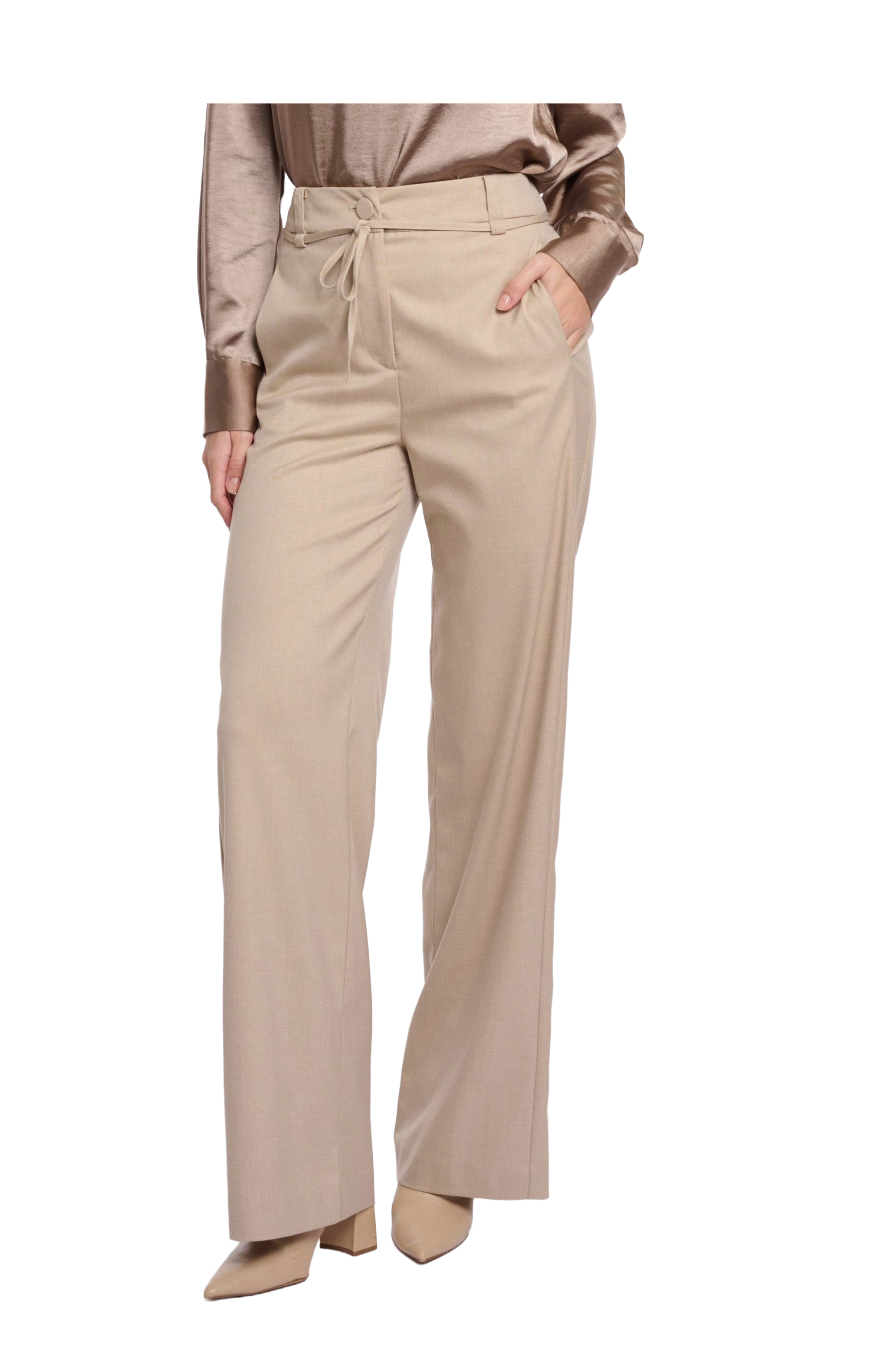 Das weite Bein sorgt für eine fließende Silhouette, während Gürtelschlaufen und eine Kordel am Bund zusätzliche Styling-Möglichkeiten bieten.