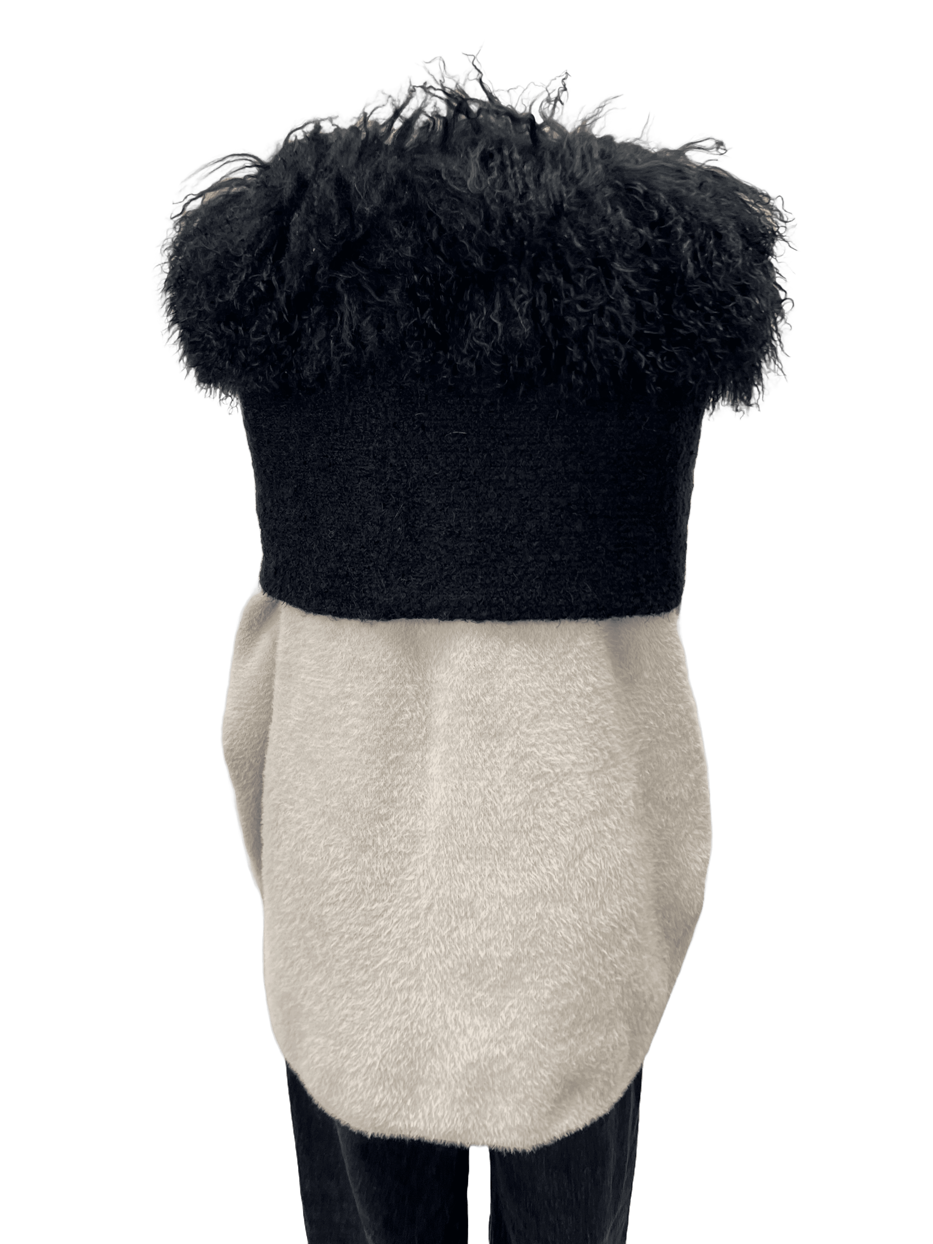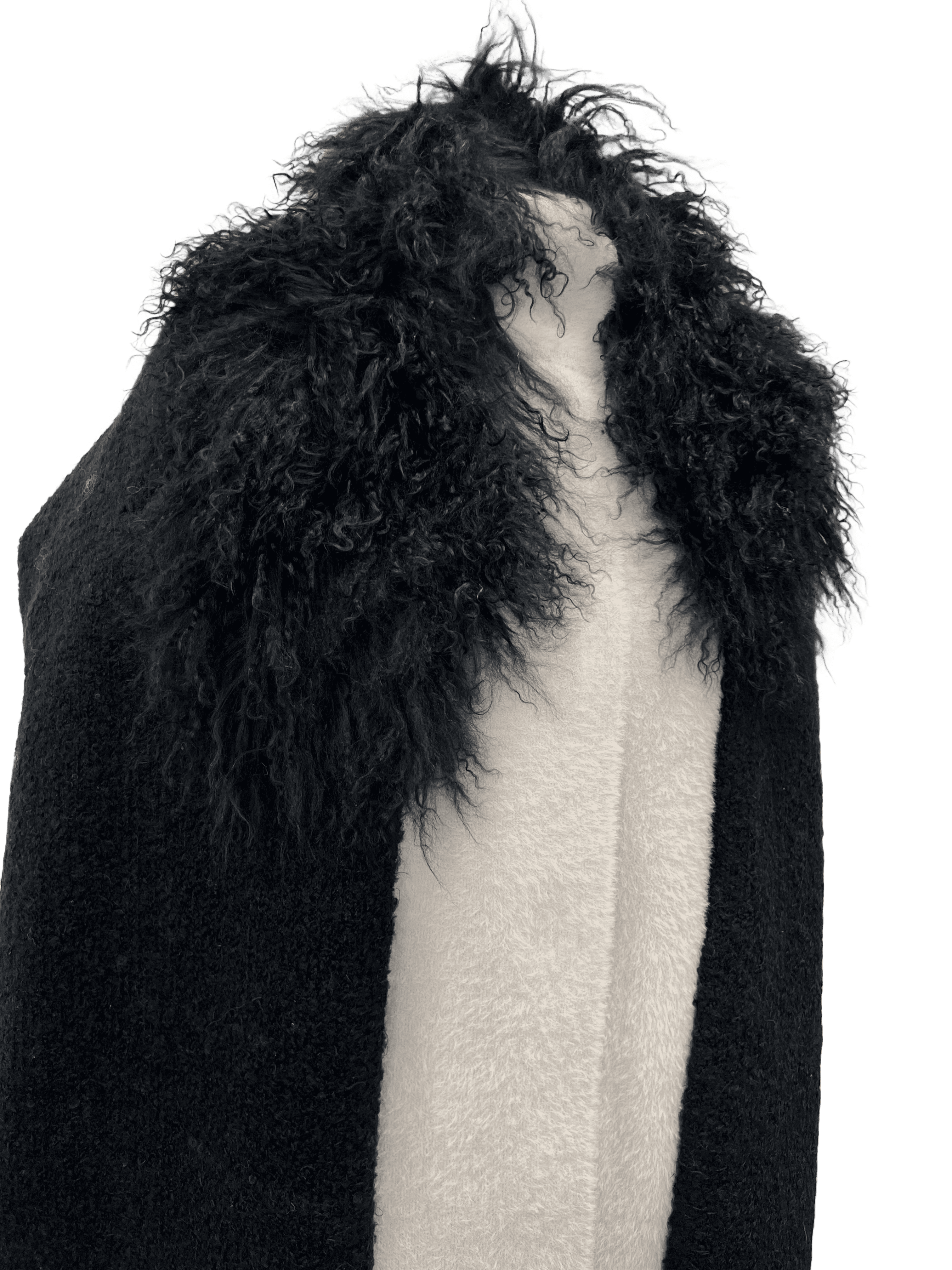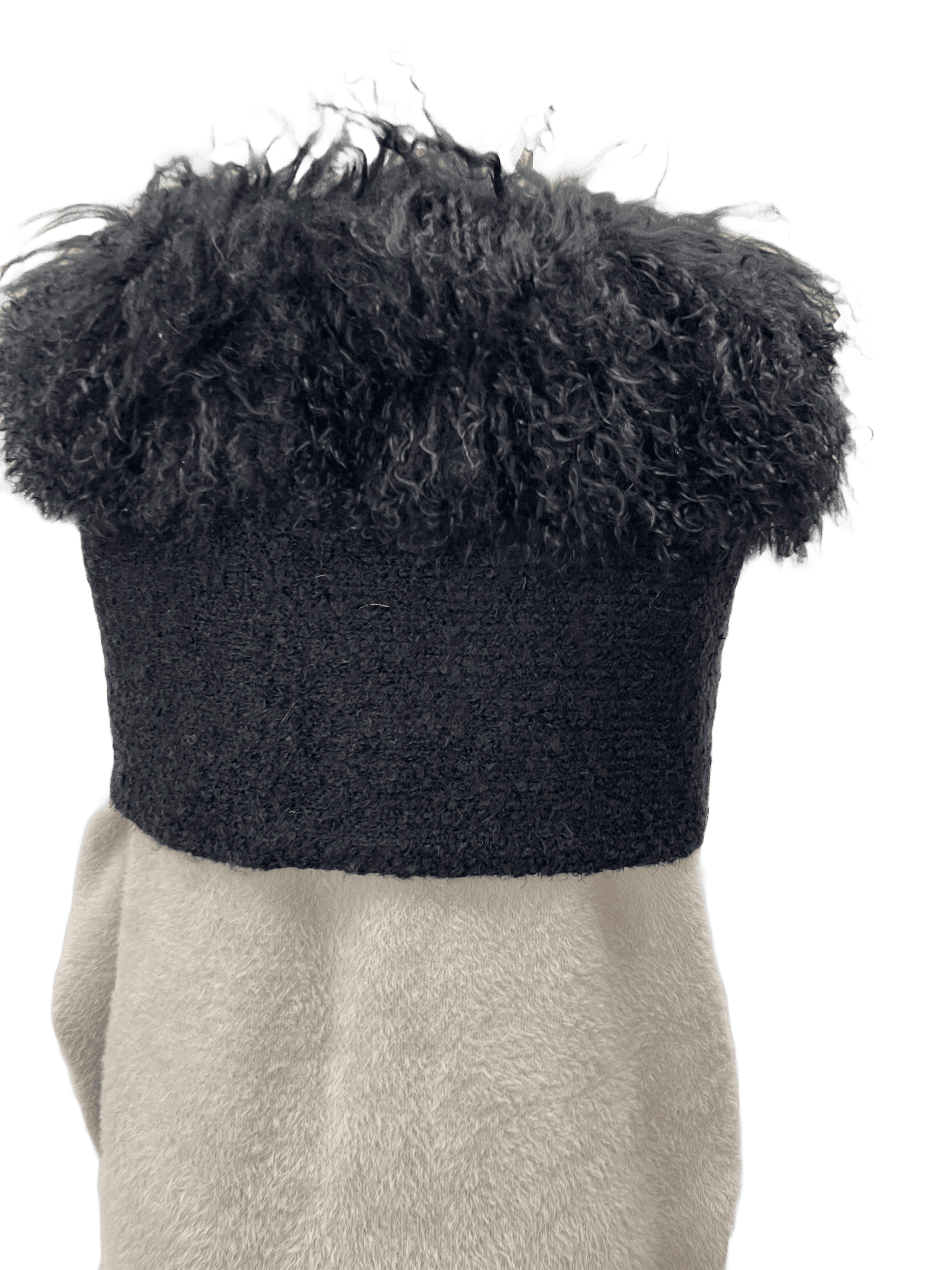 Hoy von Rino & Pelle hält dich kuschelig warm und umschmeichelt Dich mit dem fluffigen Echtfellkragen. Trag den Schal auch als Cape oder Stola.