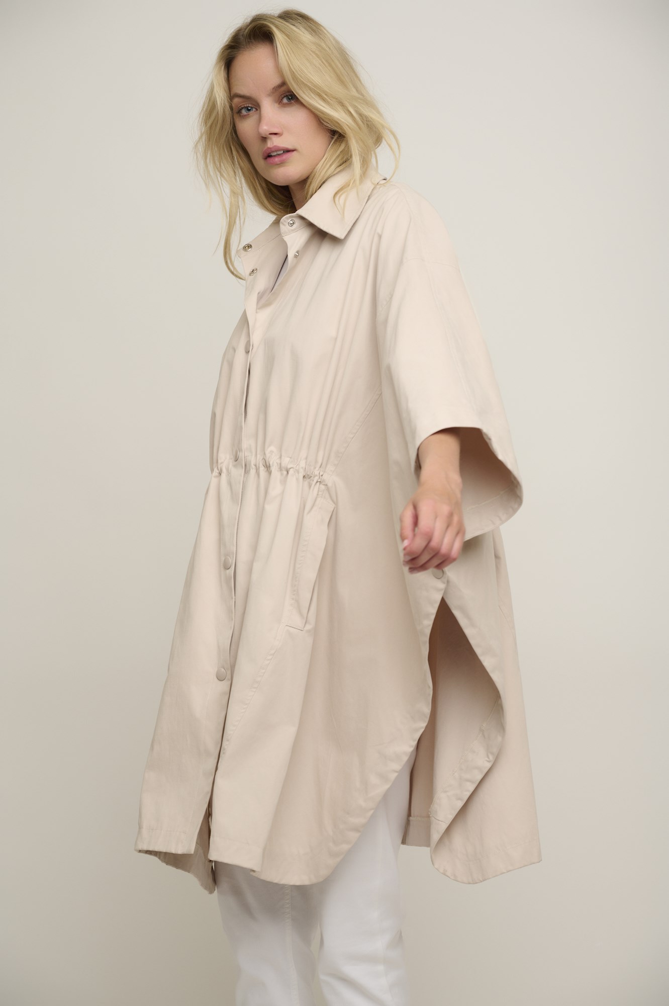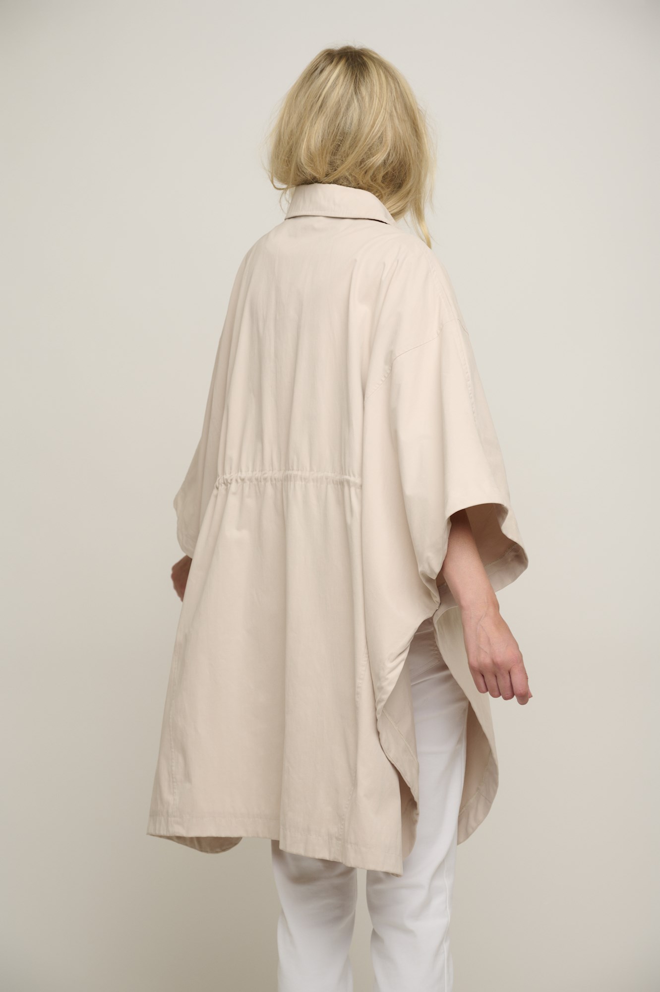 Der weite Schnitt verleiht einen modernen Look, während der Kordelzug an der Taille eine individuelle Anpassung ermöglicht.