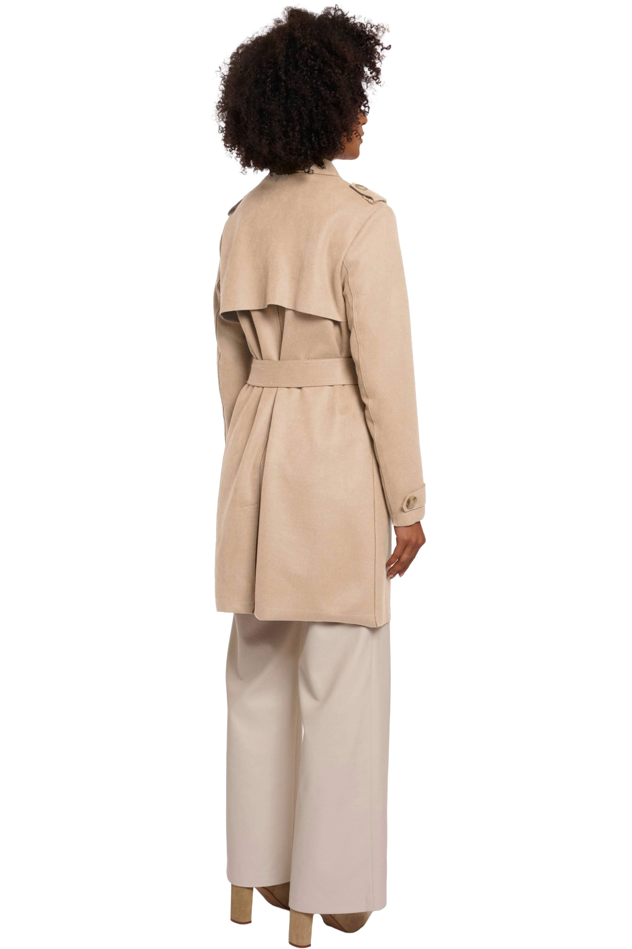 Der knielange Damen Trenchcoat "Kyona" von Rino & Pelle präsentiert sich als zeitloser Klassiker. Die figurbetonte Silhouette wird durch den Taillengürtel hervorgehoben und sorgt für eine klare, elegante Linie.