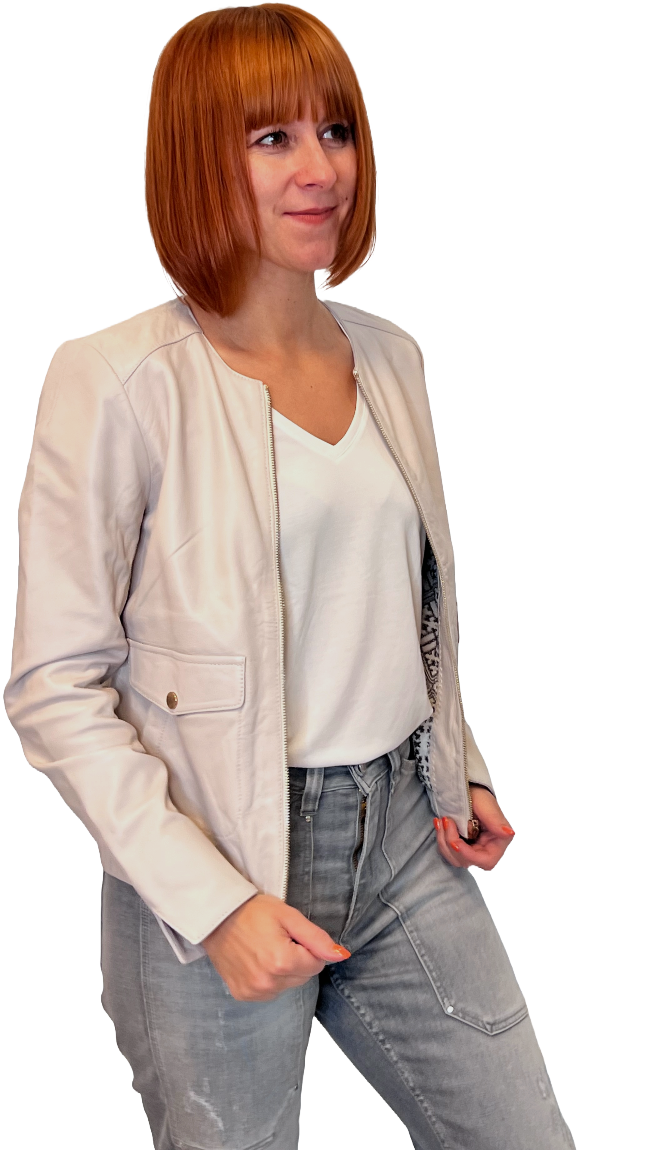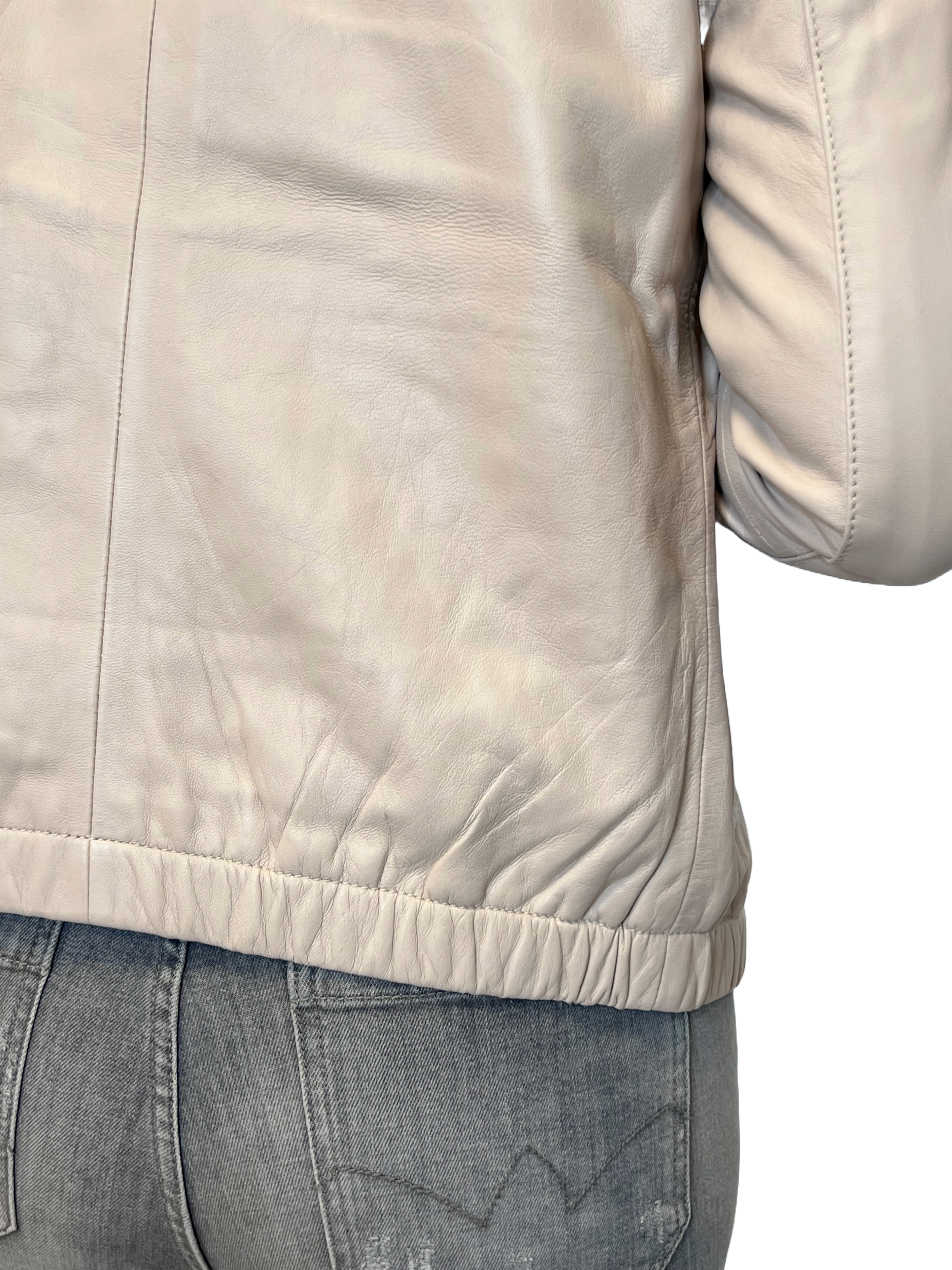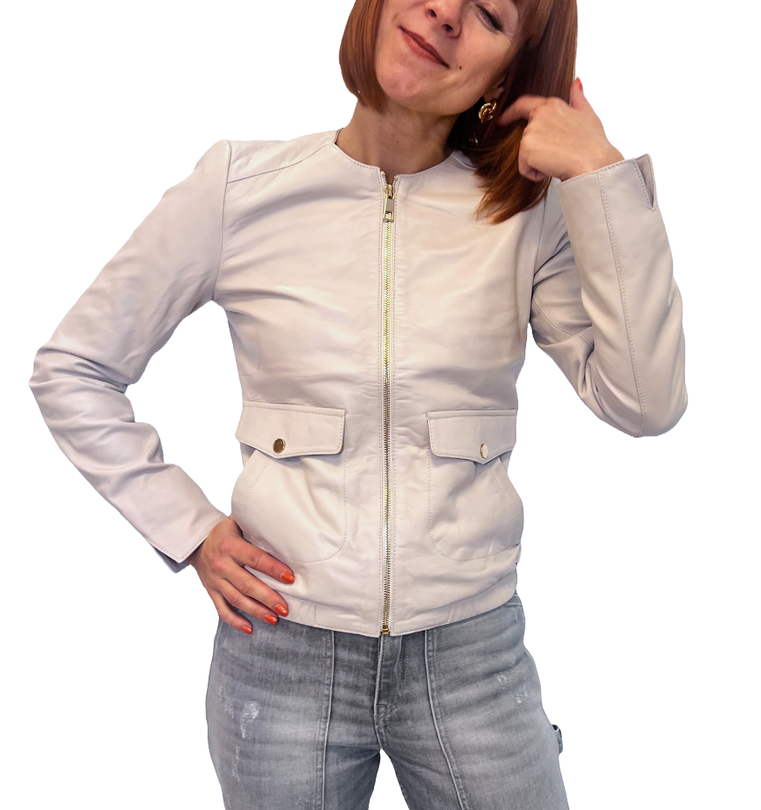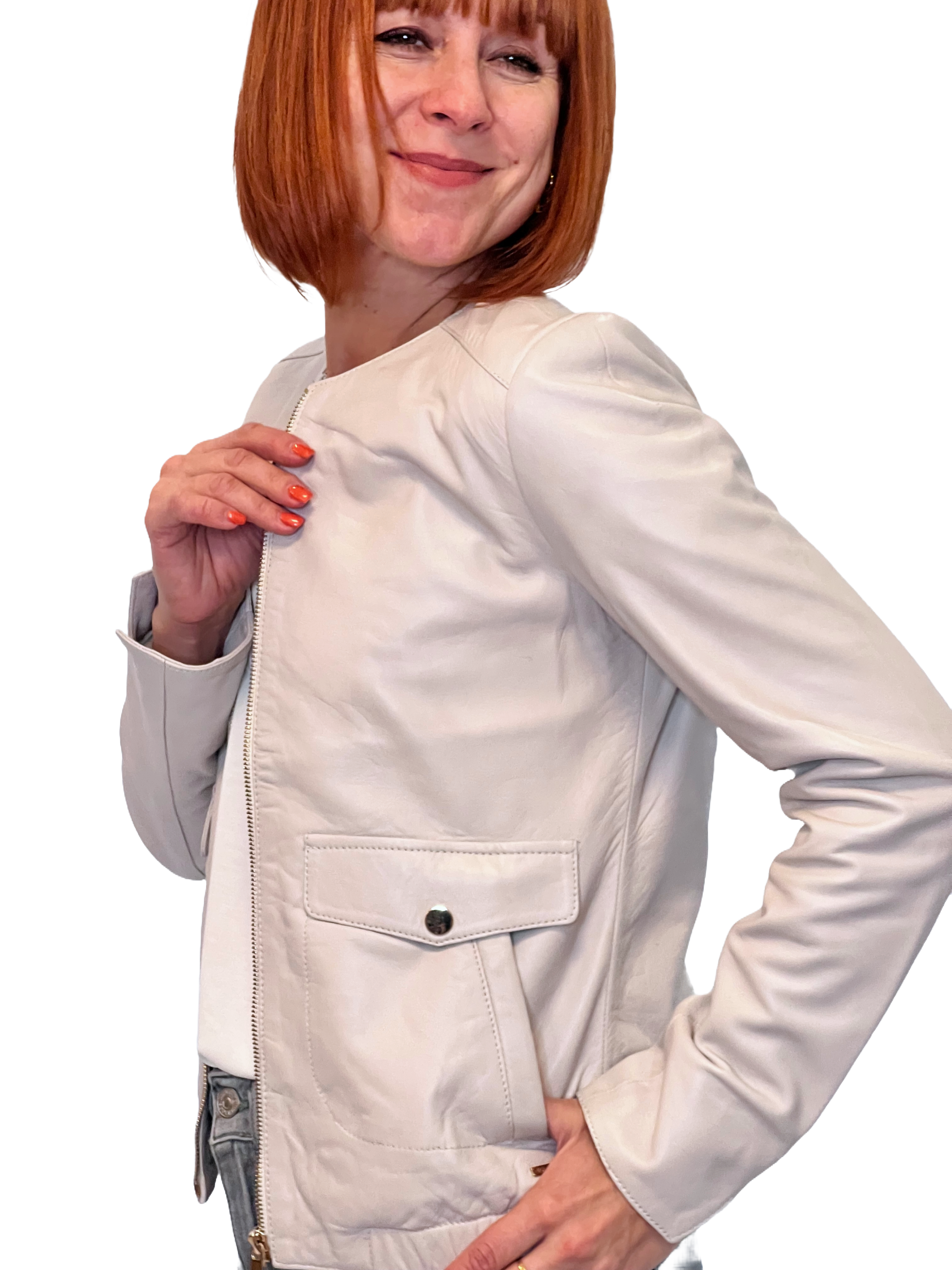 Eine Lederjacke mit Bündchen, zart, leicht, mit Reißverschluß zu verschließen. Das ist Limone, ein Lederjacke aus hochwertigem Lammnappa von Rino Pelle.