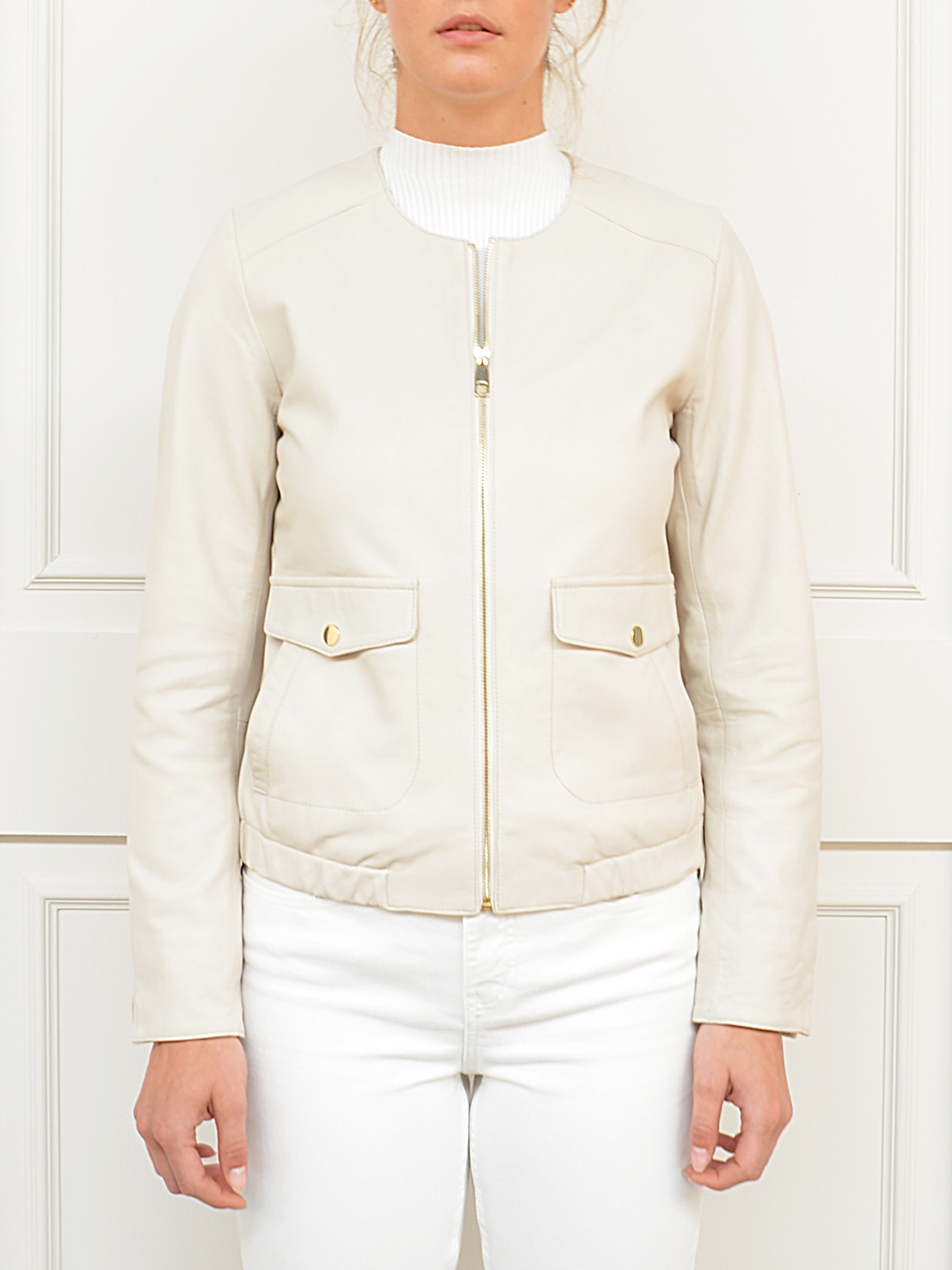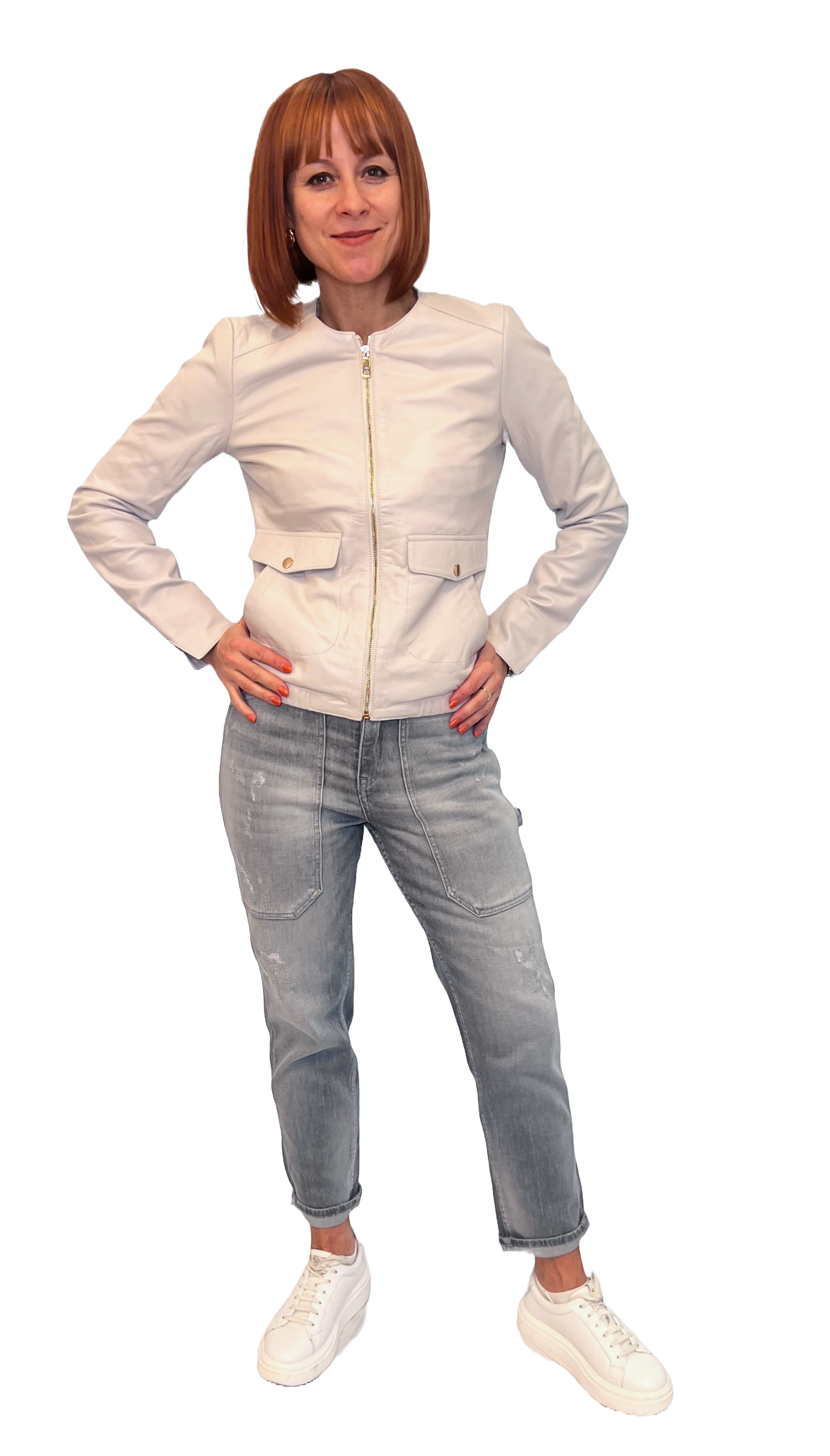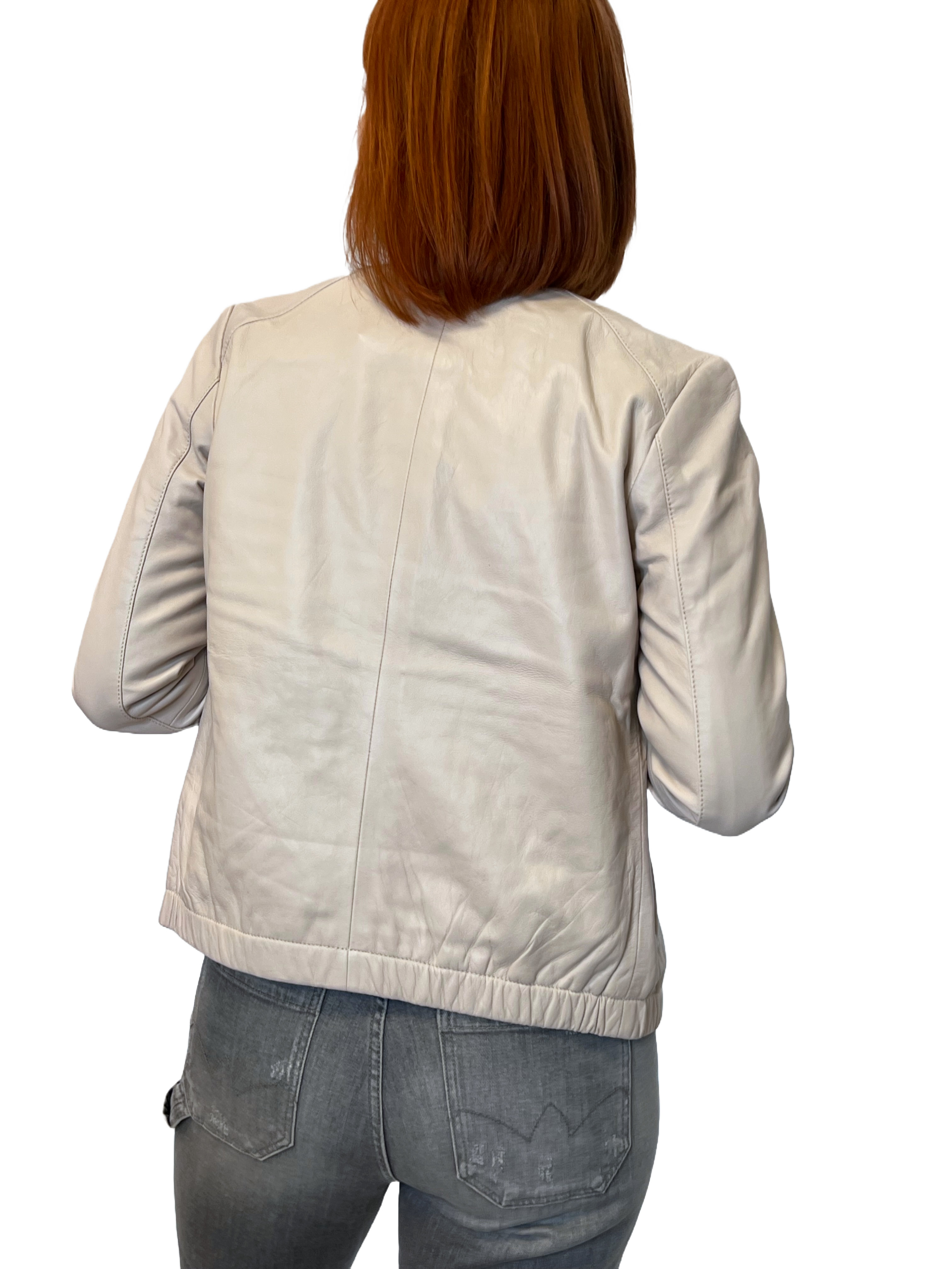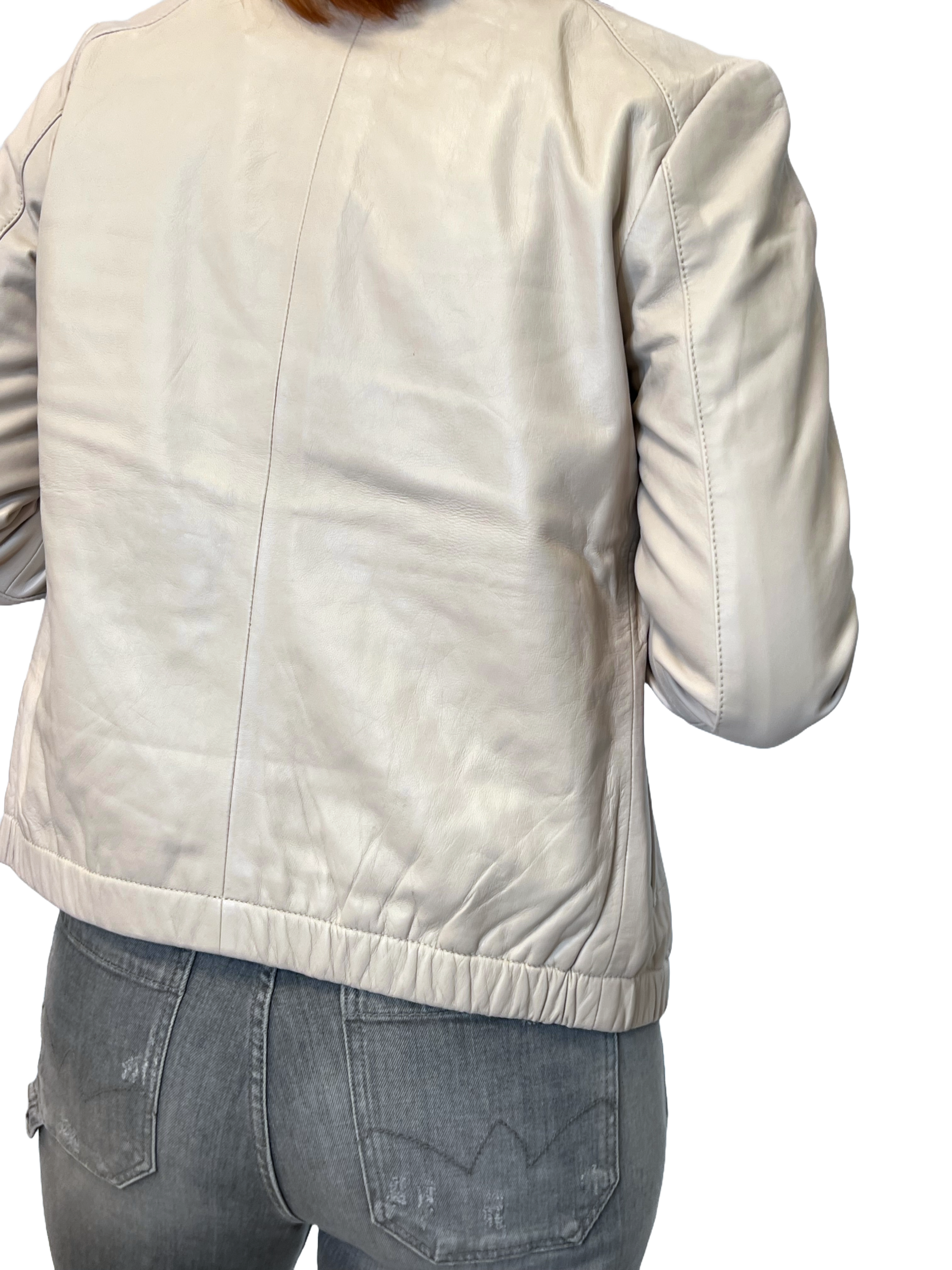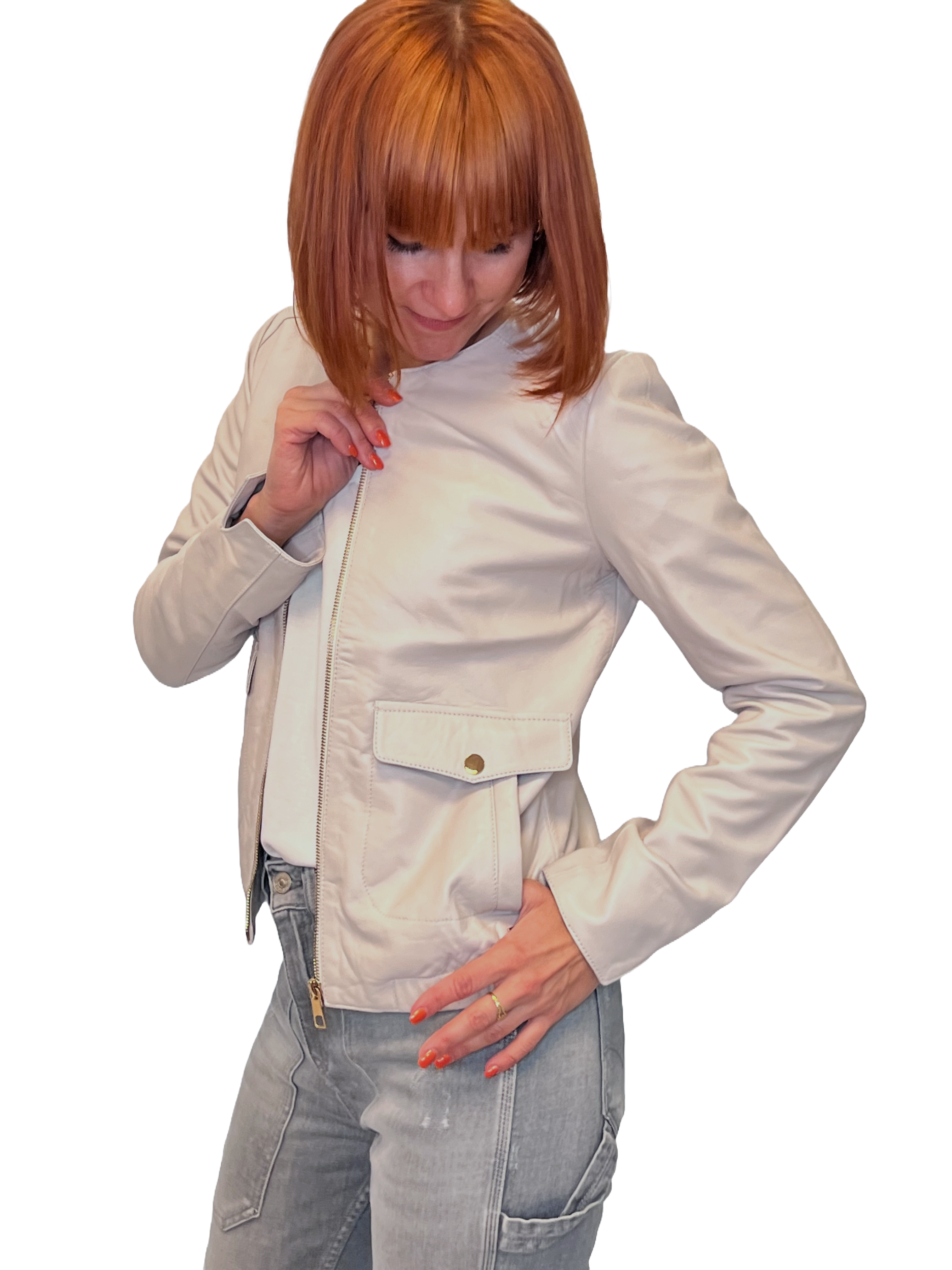 Eine Lederjacke mit Bündchen, zart, leicht, mit Reißverschluß zu verschließen. Das ist Limone, ein Lederjacke aus hochwertigem Lammnappa von Rino Pelle.