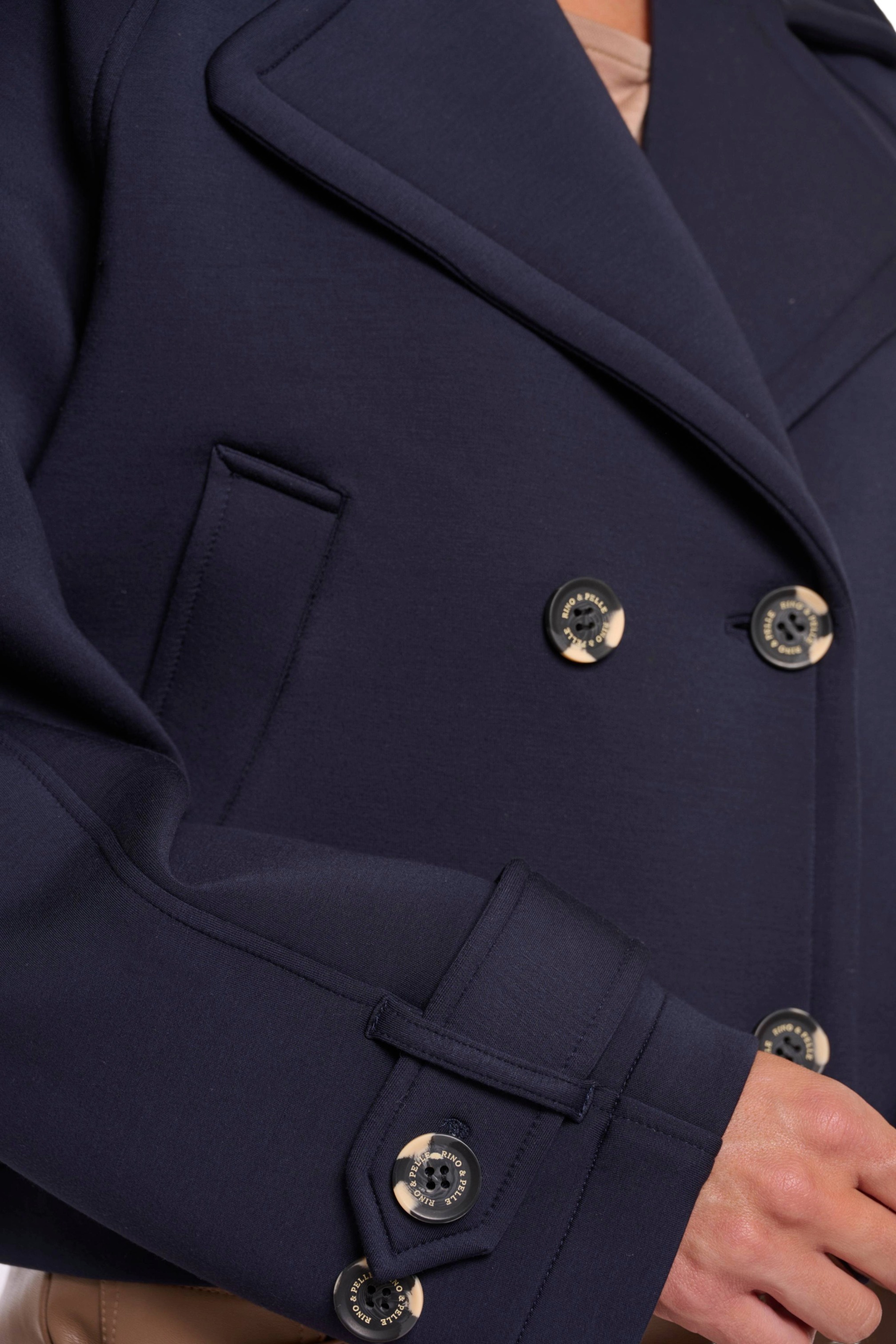 Die "Lola" Damen Jacke von Rino & Pelle vereint modernen Stil mit klassischer Eleganz. Die gerade Silhouette aus glattem Material und die verkürzte Länge machen sie zu einem besonderen Hingucker!