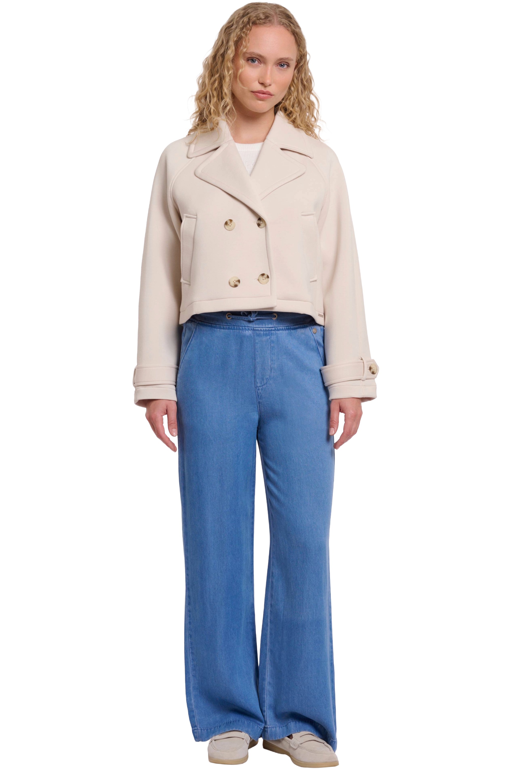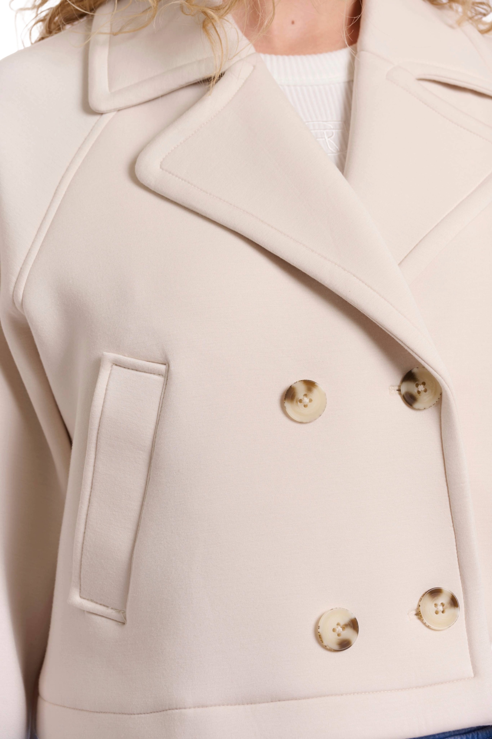 Die "Lola" Damen Jacke von Rino & Pelle vereint modernen Stil mit klassischer Eleganz. Die gerade Silhouette aus glattem Material und die verkürzte Länge machen sie zu einem besonderen Hingucker!