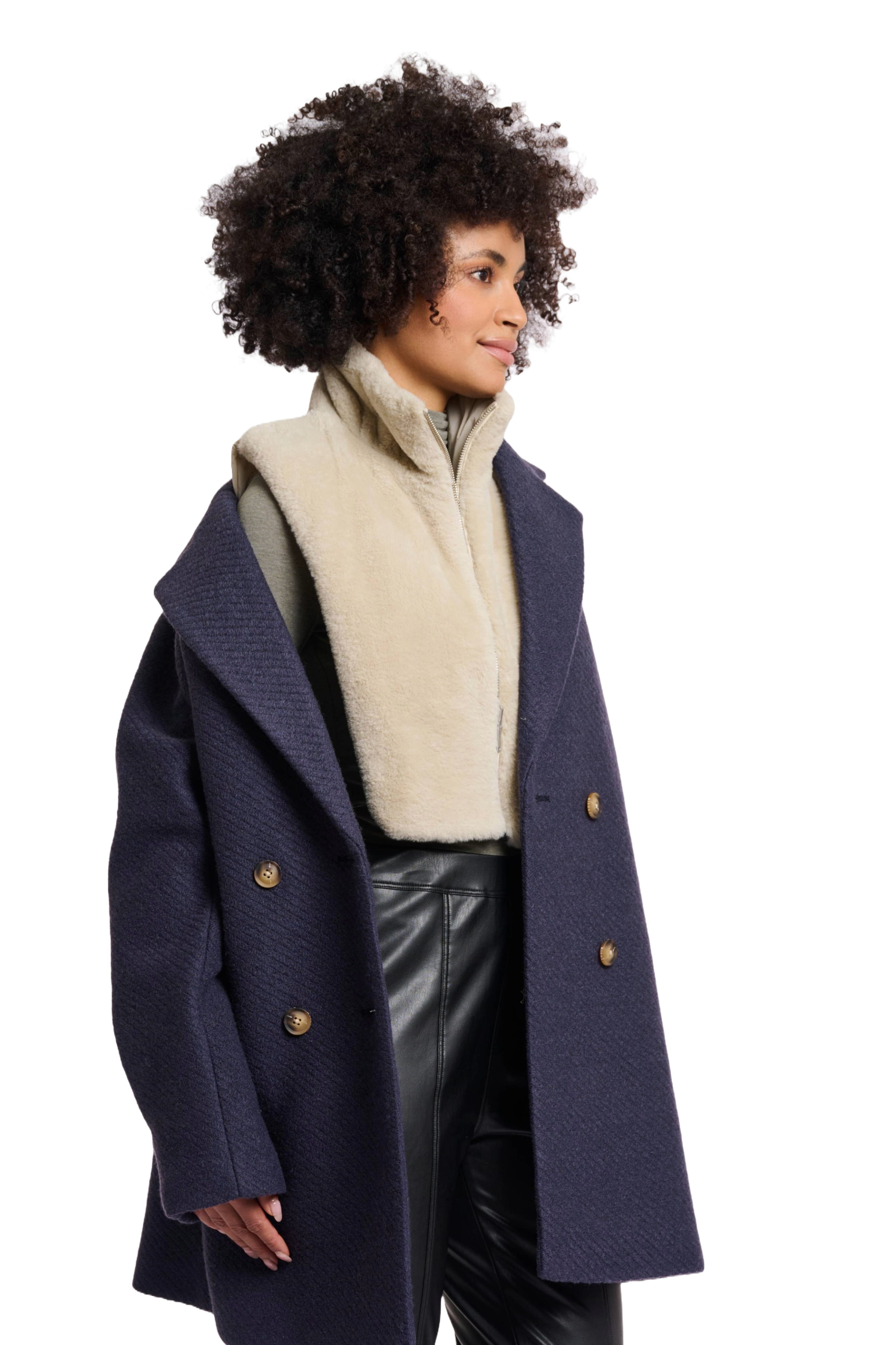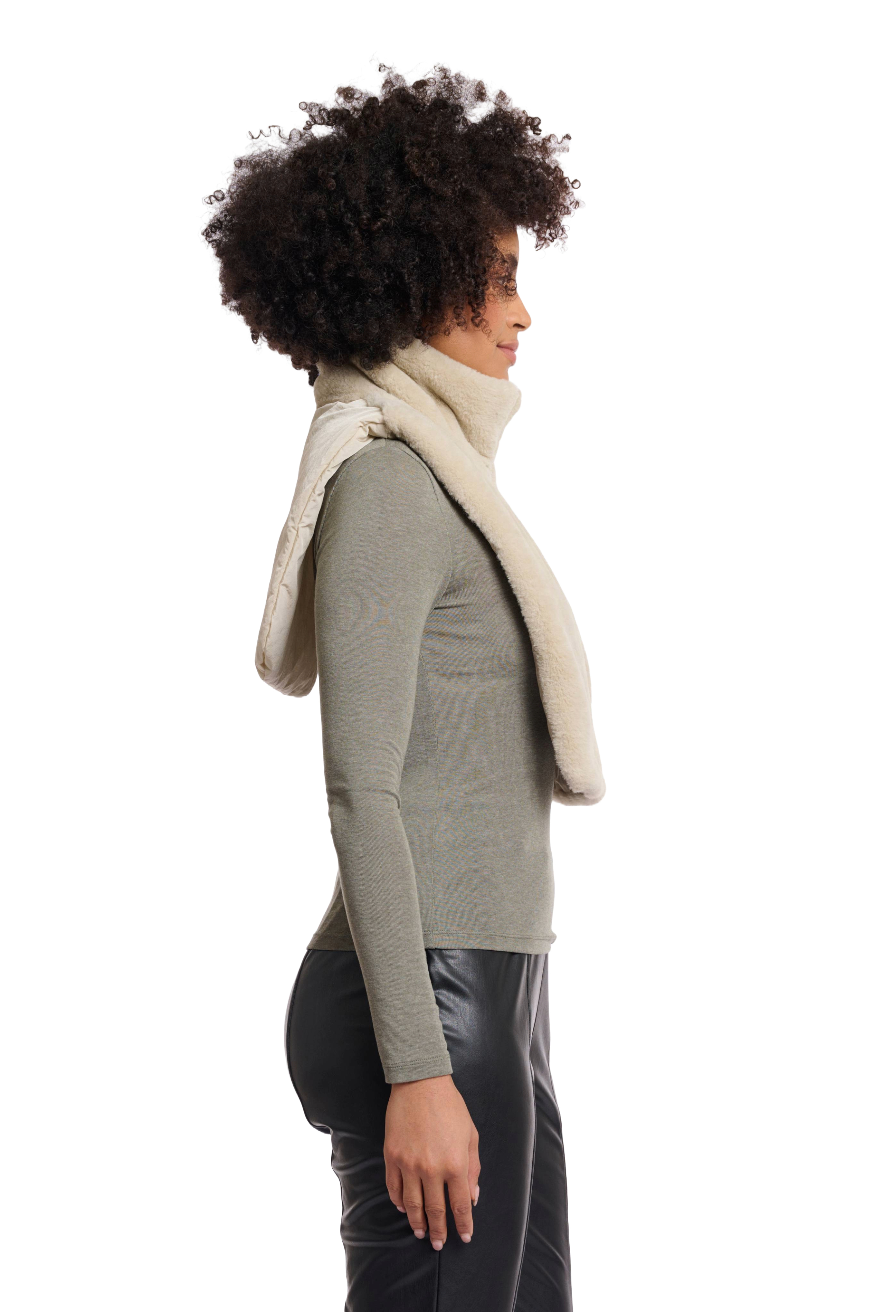 Mit dem "Nura" Kragen bietet Rino & Pelle ein modernes Accessoire, das Funktionalität und Stil vereint. Das pelzähnliche Material verleiht eine luxuriöse Optik, während der hohe Stehkragen eine klare Silhouette schafft!