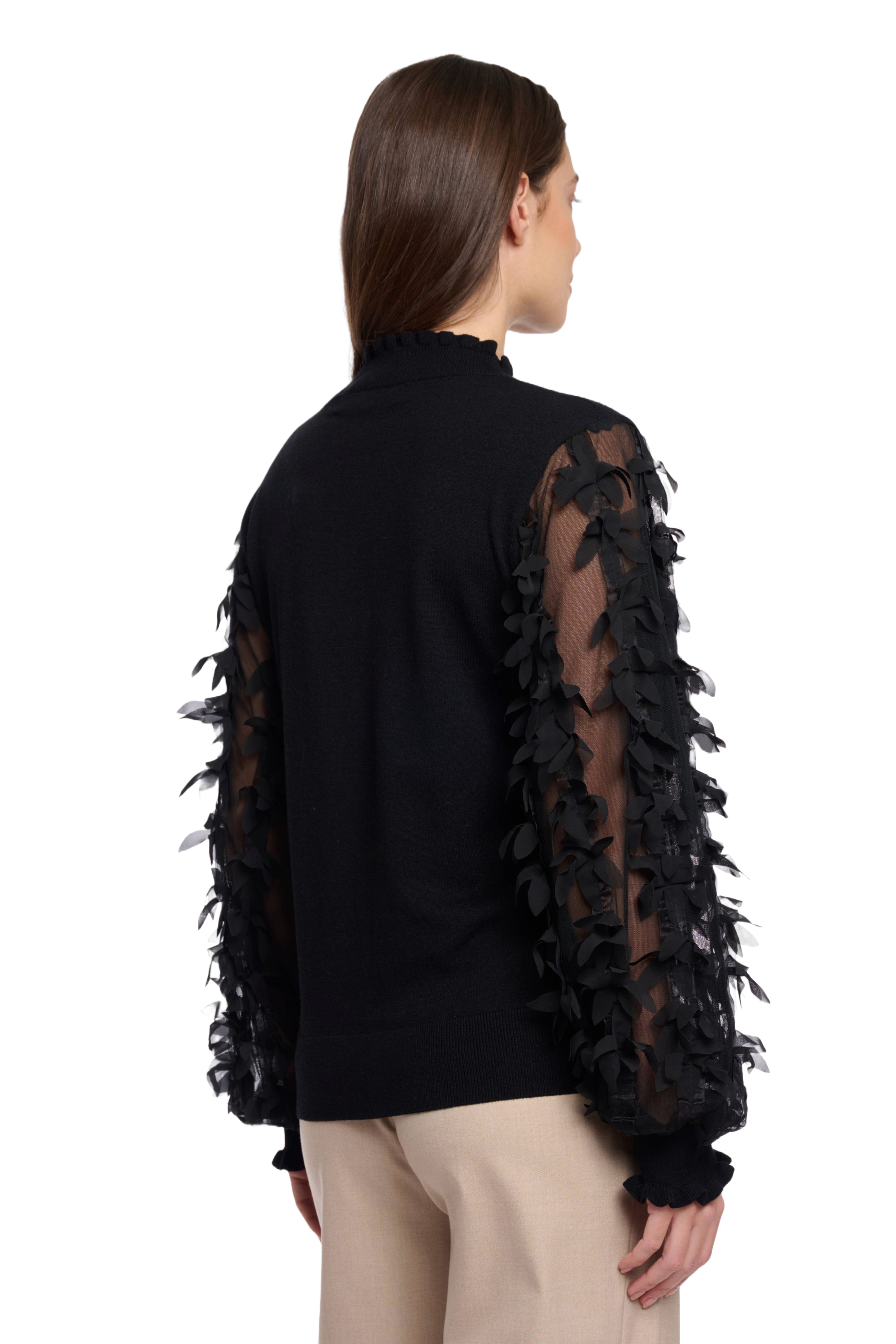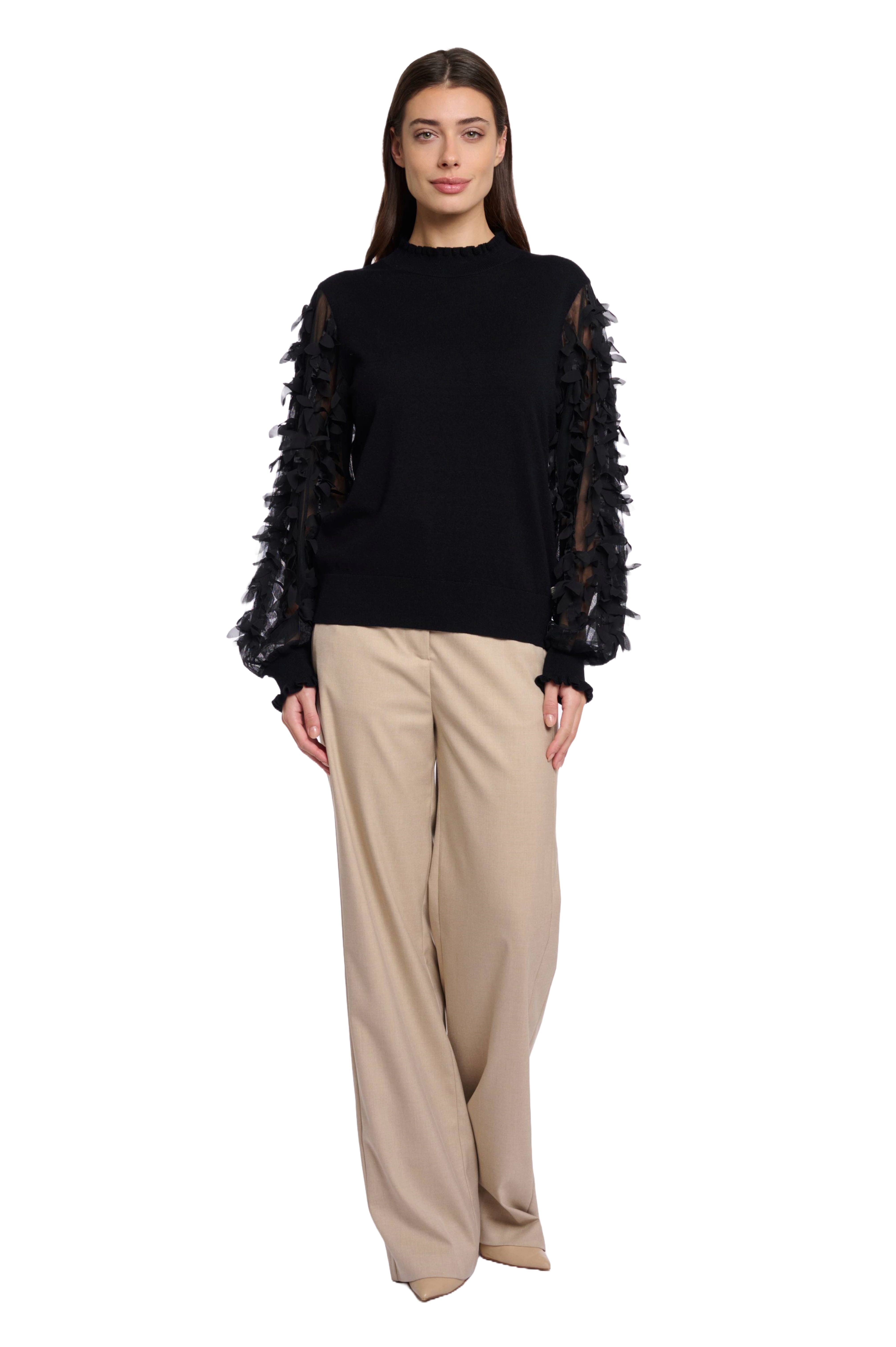 Der Damenpullover "Romi" von Rino & Pelle kombiniert ein lässiges Strickdesign mit extravaganten, transparenten Ballonärmeln. Die feinen Fransen sorgen für eine leichte, fast schwebende Optik und setzen modische Akzente.
