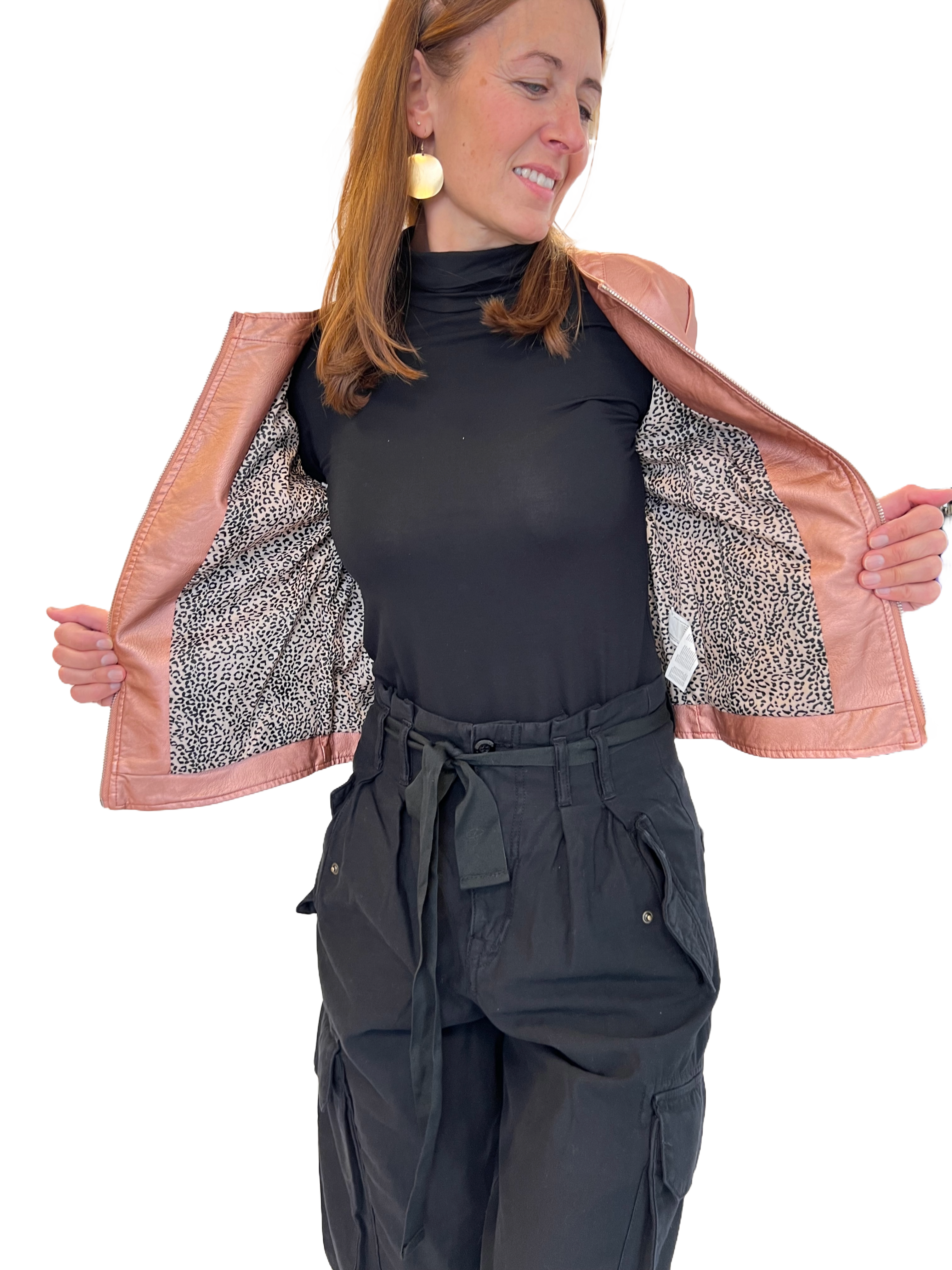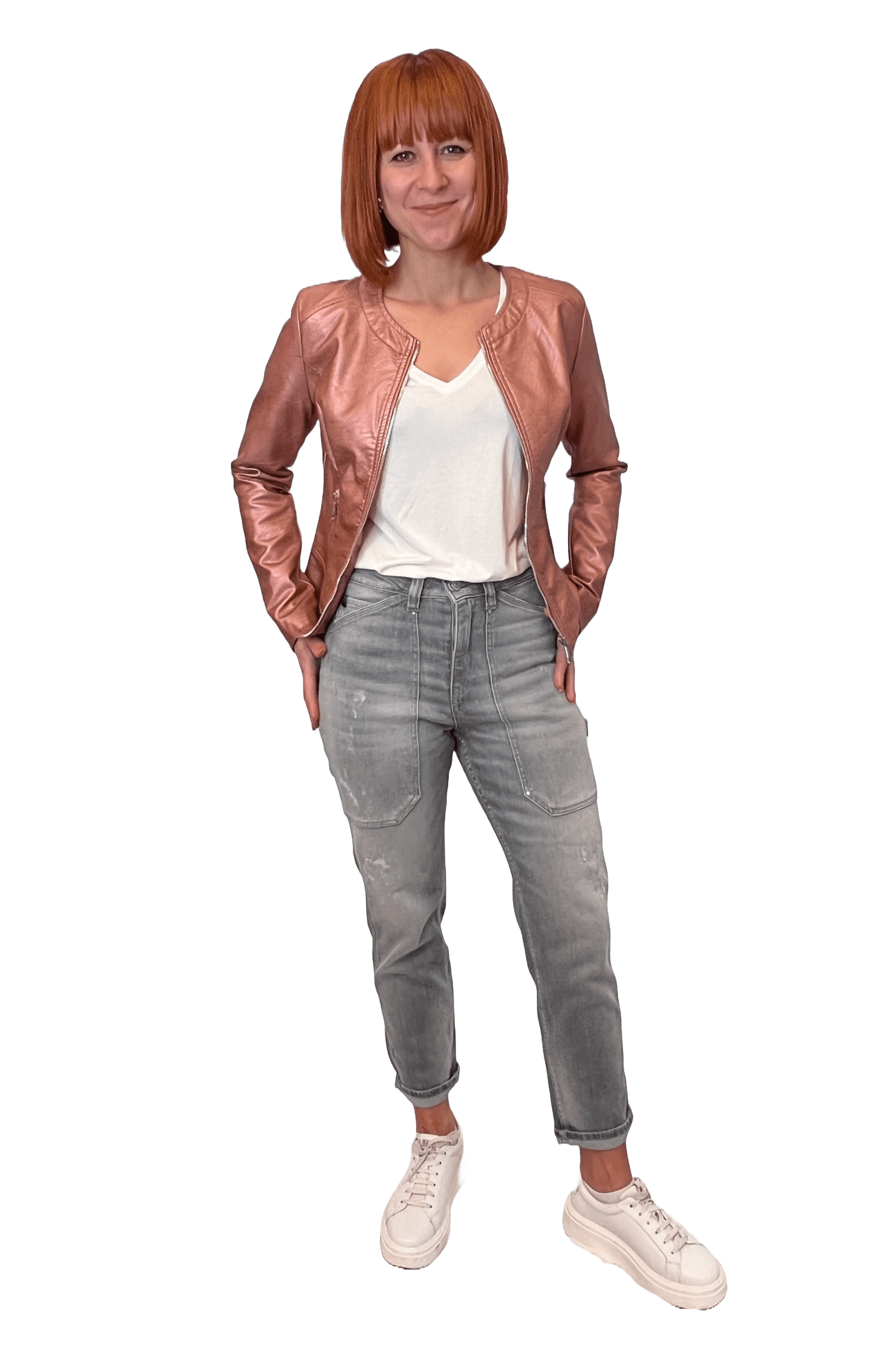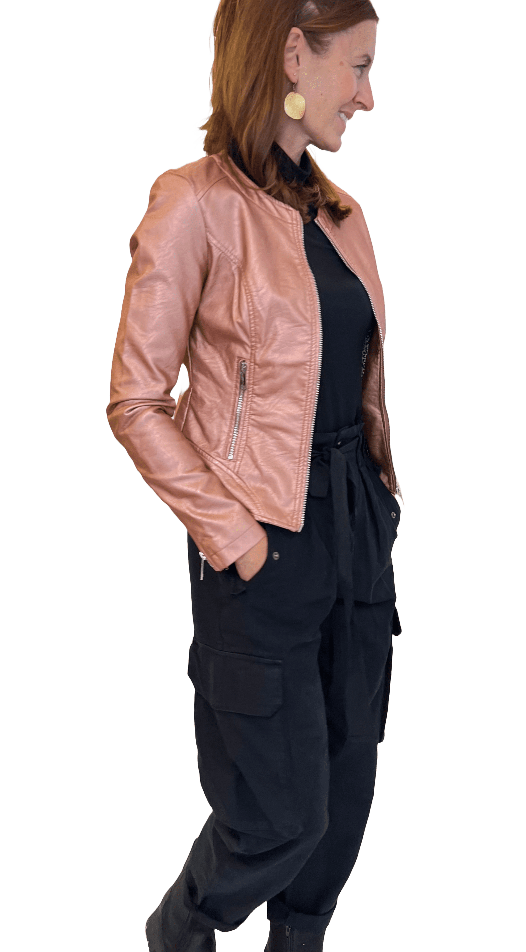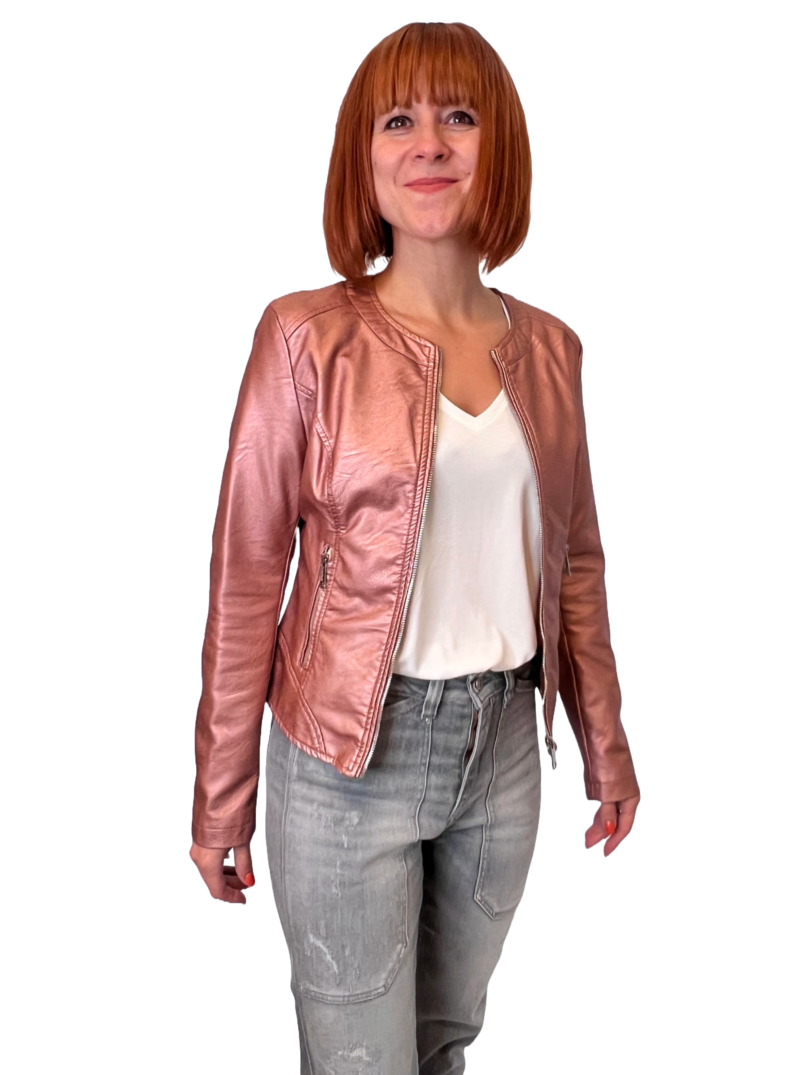 Diese Lederimitat Jacke im Bikerstyle ist absolut zu jedem Outfit passend. Ganz gleich ob man sportlich oder schick angezogen ist, sie wertet jedes Outfit optisch auf.