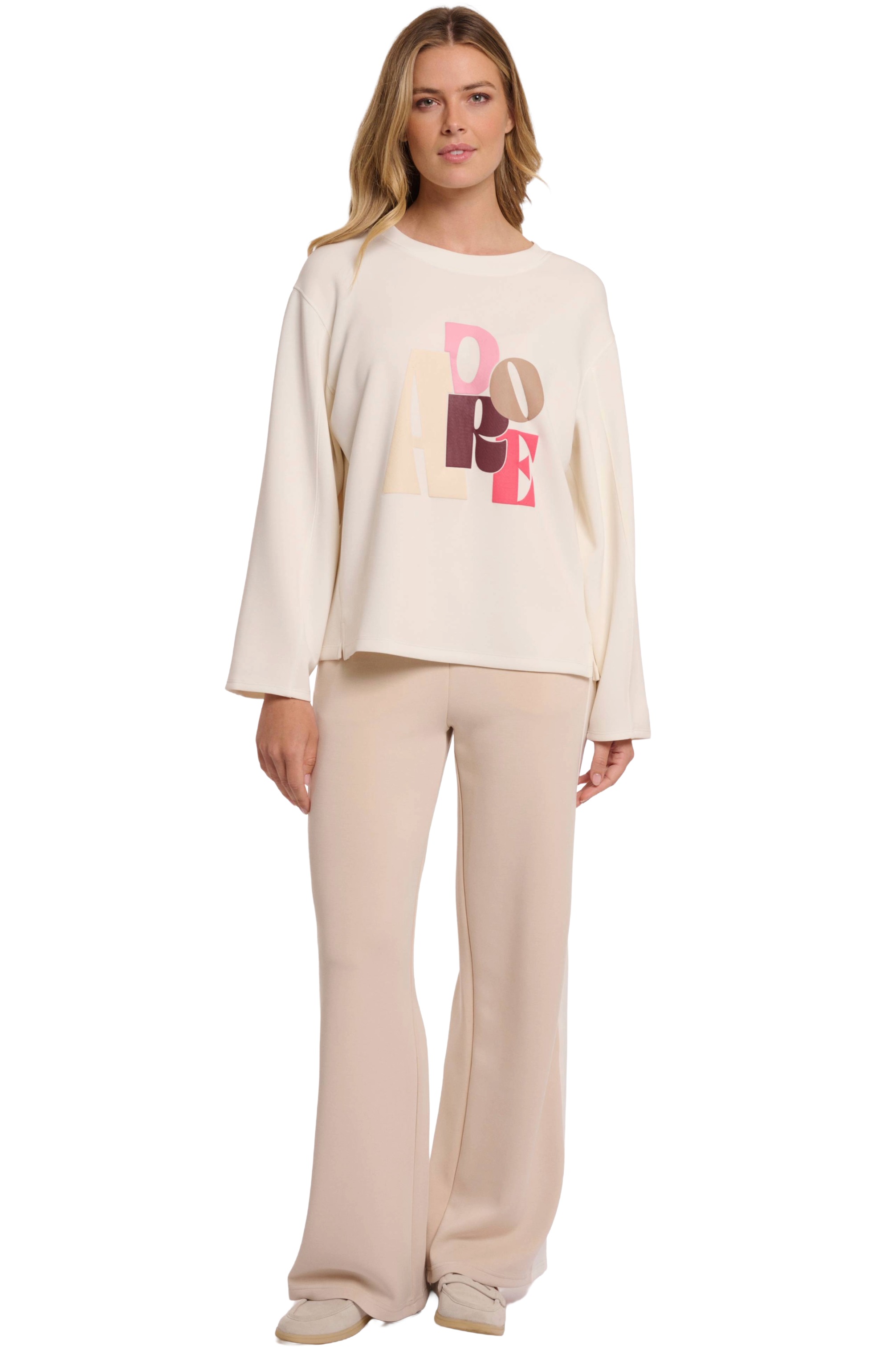 Der "Xante" Damen Pullover von Rino & Pelle vereint hohen Tragekomfort mit einer coolen Optik. Überschnittene Schultern, weite Ärmel und ein "Adore" Artwork auf der Front machen den Pullover zu einem besonderen Hingucker!