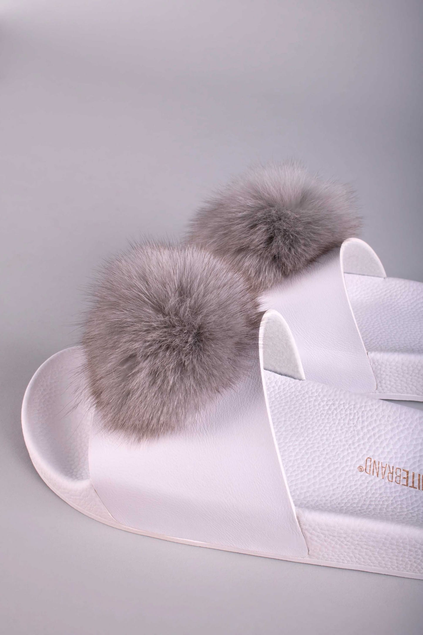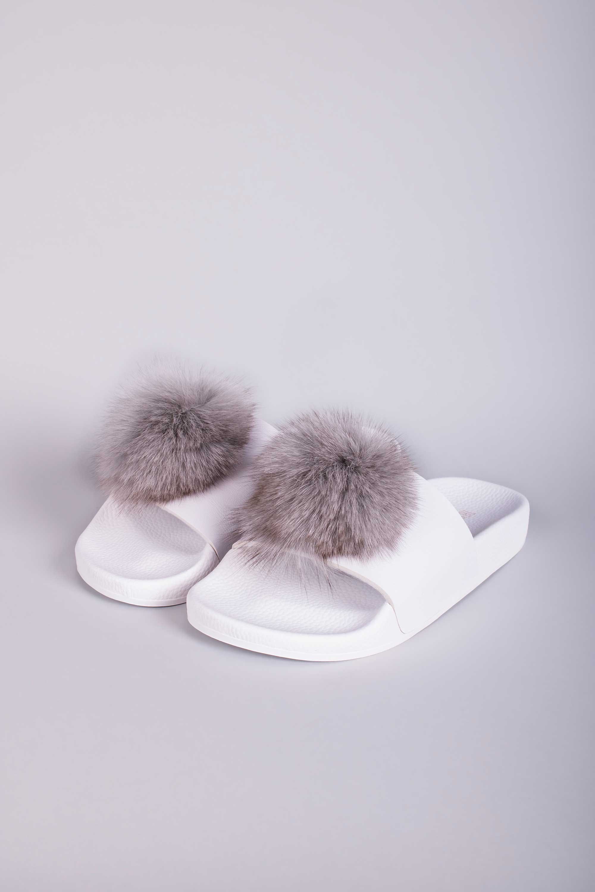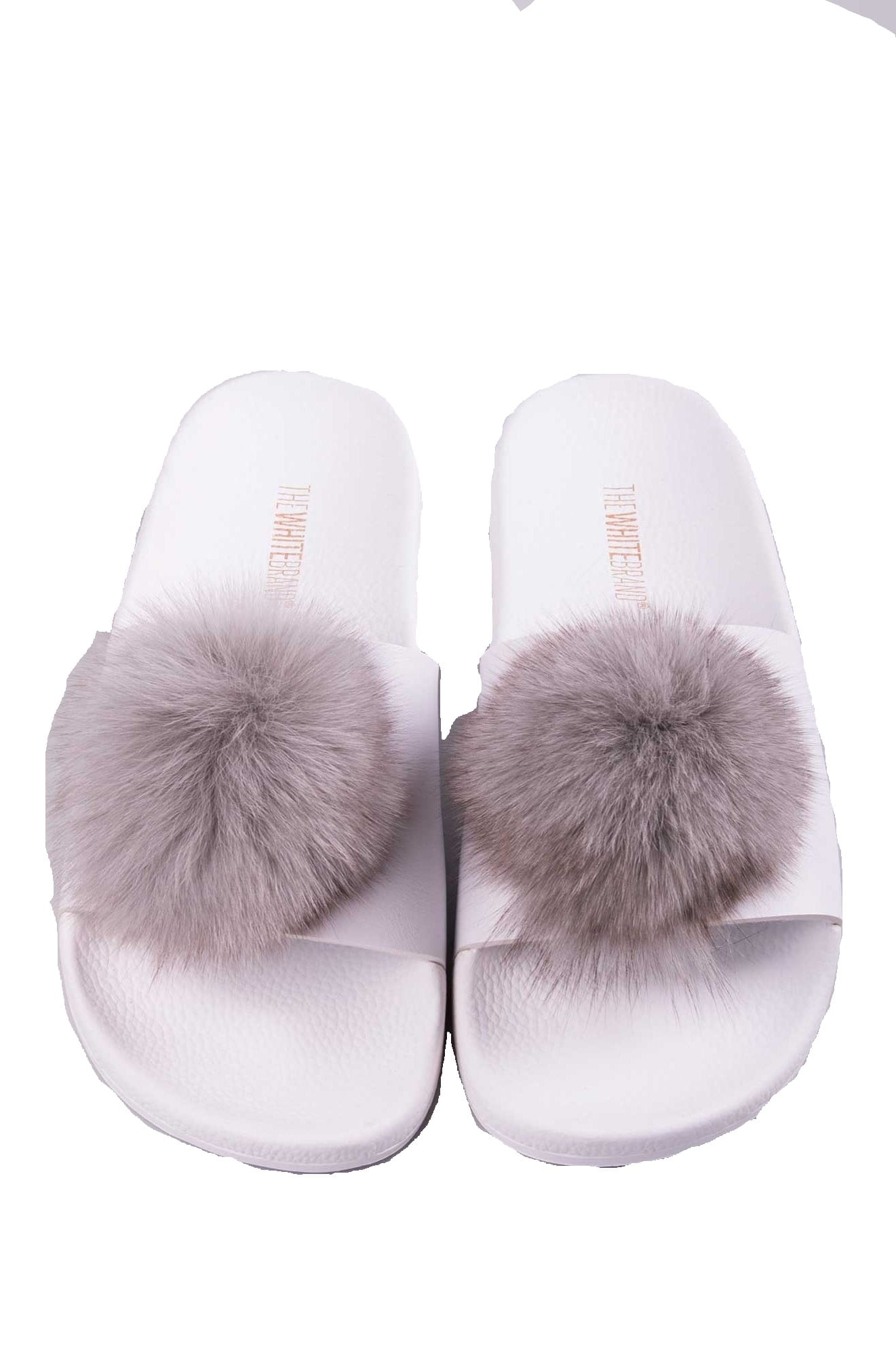 Edle Damen Pantolette "Pompon" von The White Brand. Die Fellbommel machen die bequeme Pantolette zu einem absoluten Hingucker.