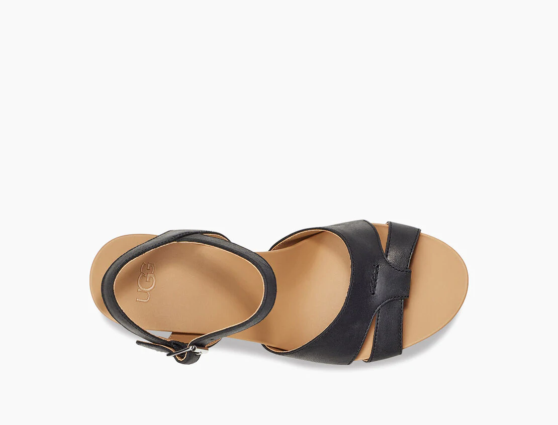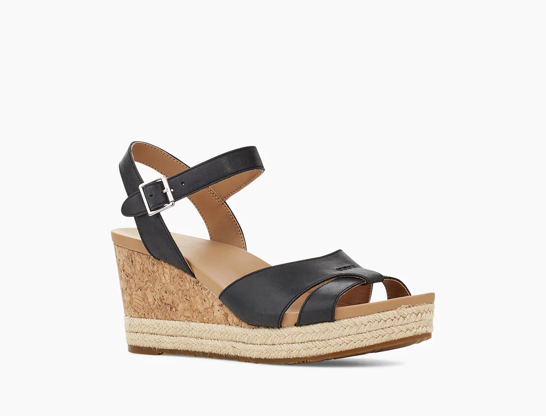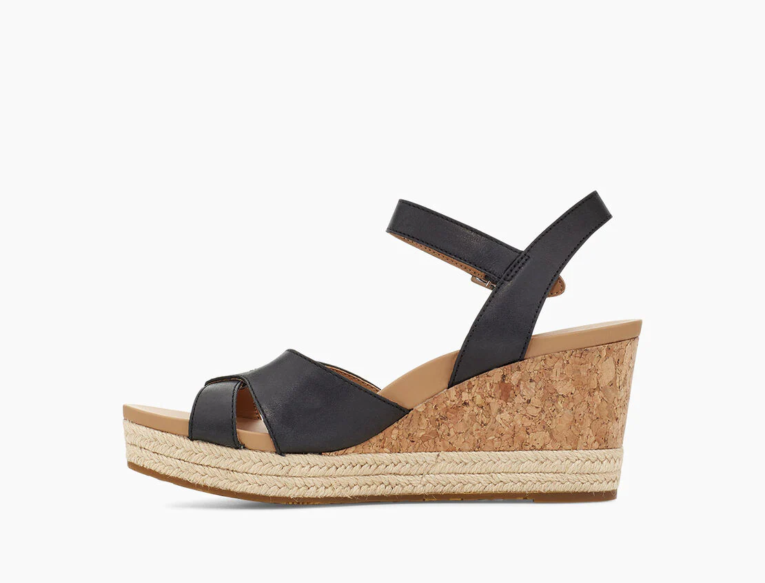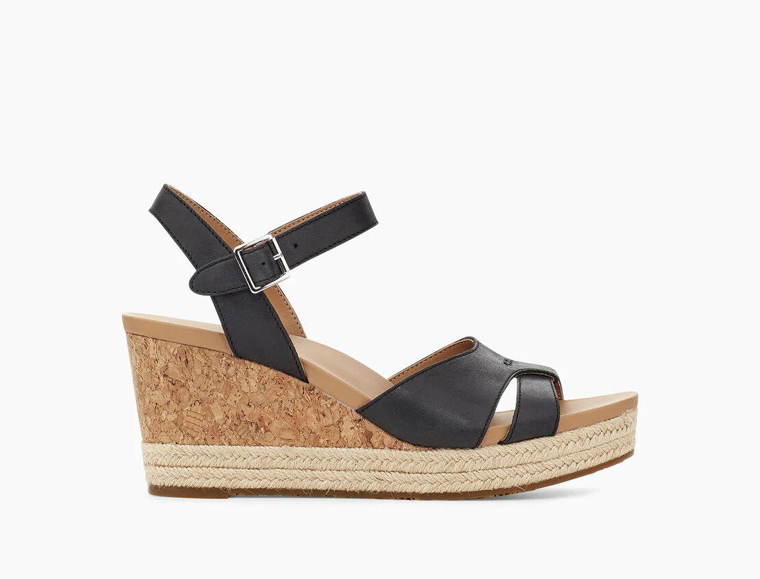 Die Sandale CLOVERDALE von UGG in zartem Glattleder ist ein Allrounder! Die Keilsandale hat einen verstellbaren Riemen und einen ca. 8cm hohen Keilabsatz und eine Plateauhöhe von 2,5cm. Sie passt einfach zu Allem, ob Sommerkleid, Buisiness Look oder Freizeit!