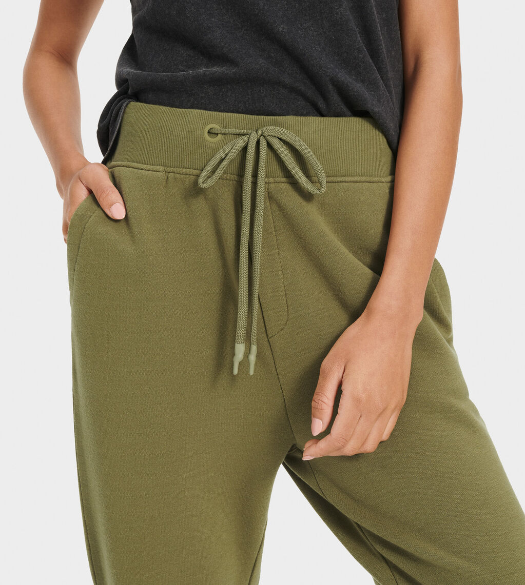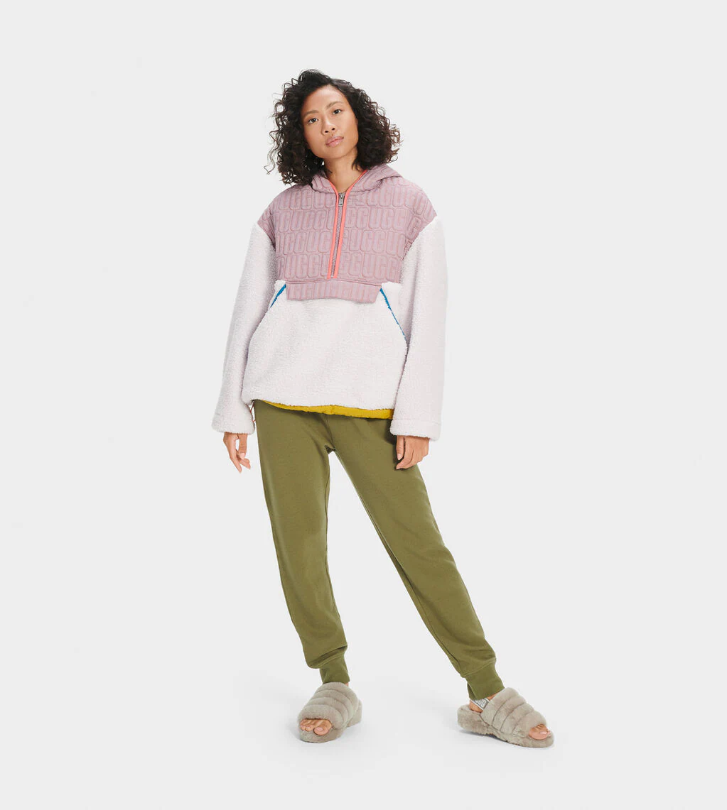 Die Jogger Hose ERICKA von UGG ist innen flauschig und außen aus glattem Sweat. Sie ist locker sitzend geschnitten. Wenn Sie es etwas Enger mögen, bestellen Sie gerne eine Größe kleiner! Als Modetupfer sind die Jogginghose mit einem farbeigen Ugg Logo an der Hinterseite versehen.