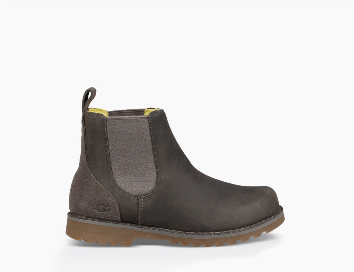 Callum ist ein Chelsea Boot von Ugg für Jungen und gut für breite Füße geeignet. Es ist ein Winterschuh aus festem Leder mit Gummieinsatz und Lammfell Innensohle.