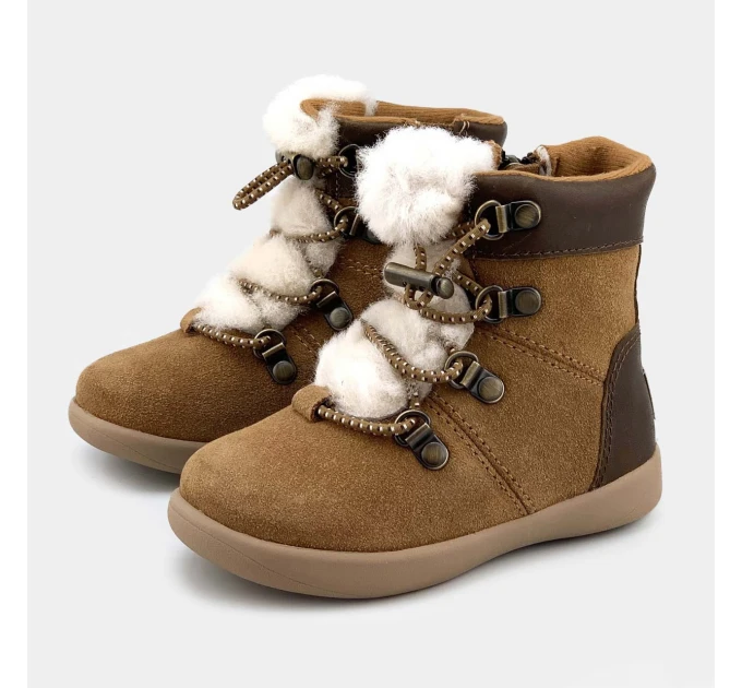 Ager ist ein kleiner süßer Mädchen Stiefel von UGG. Seitlich hat er einen Reißverschluß, von Innen ist er mit warmen Textil gefüttert und hat vorne einen kuscheligen Felleinsatz.
