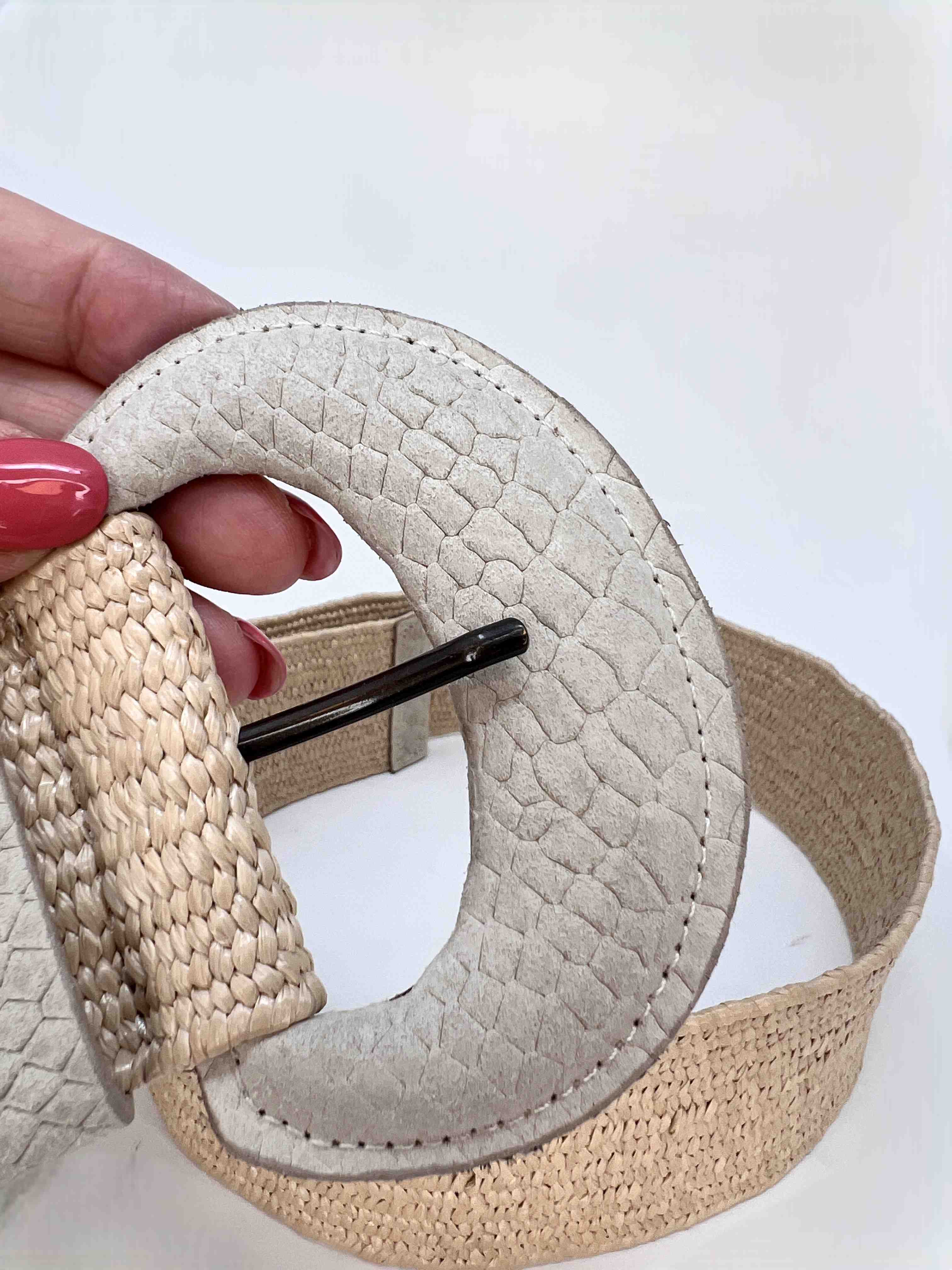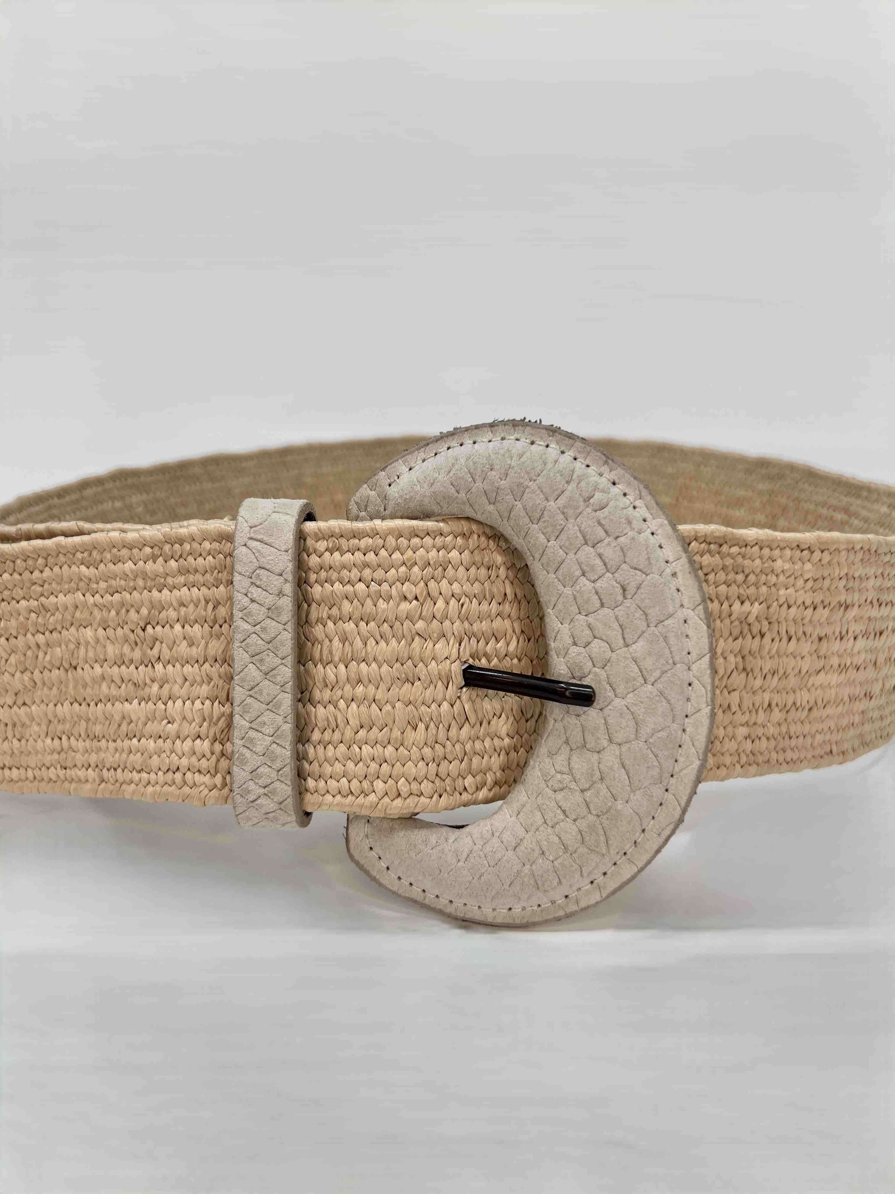 Der Vanzetti Damen Gürtel kombiniert einen natürlichen Bast-Look mit einer markanten Schnalle im Krokodilmuster.