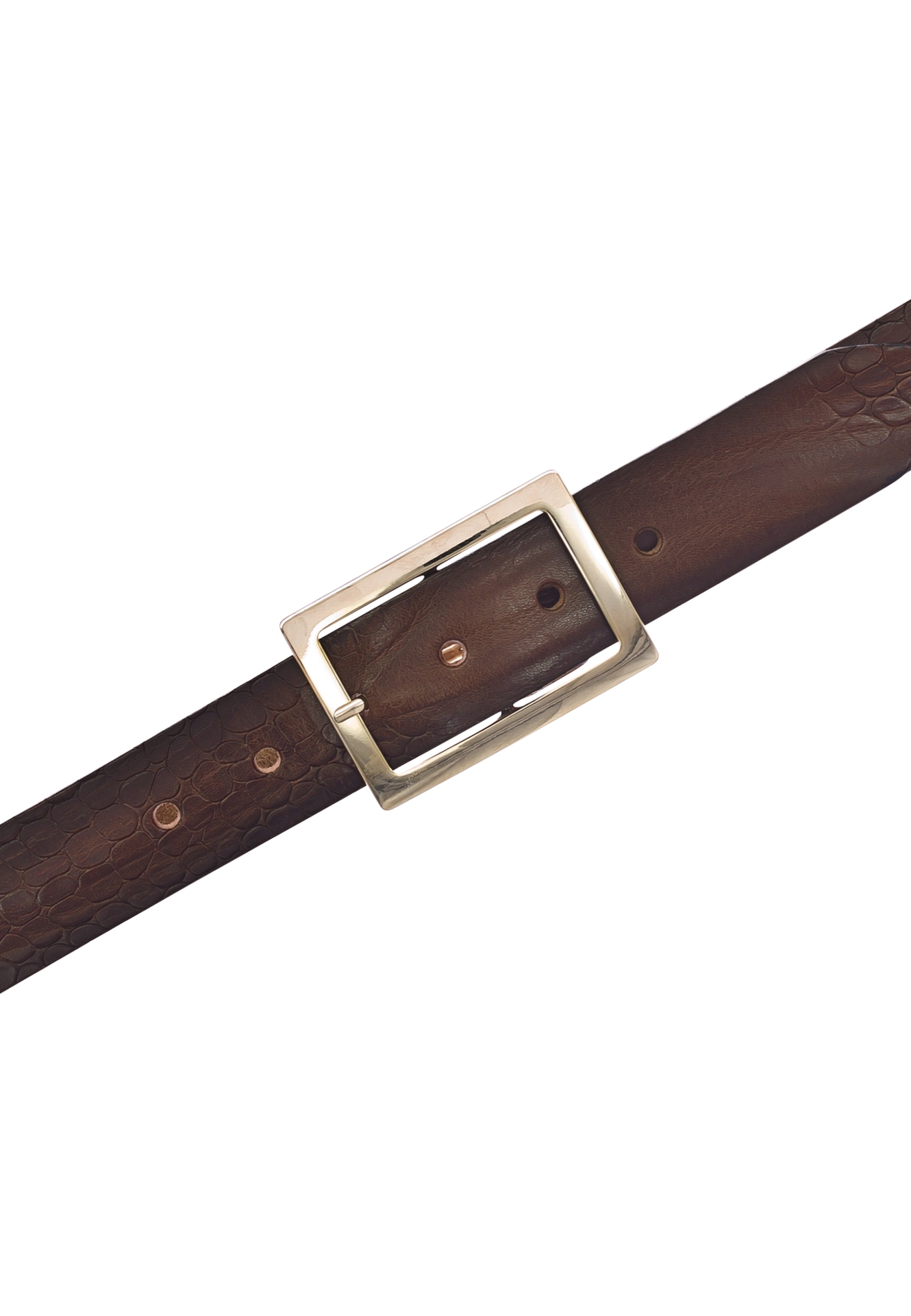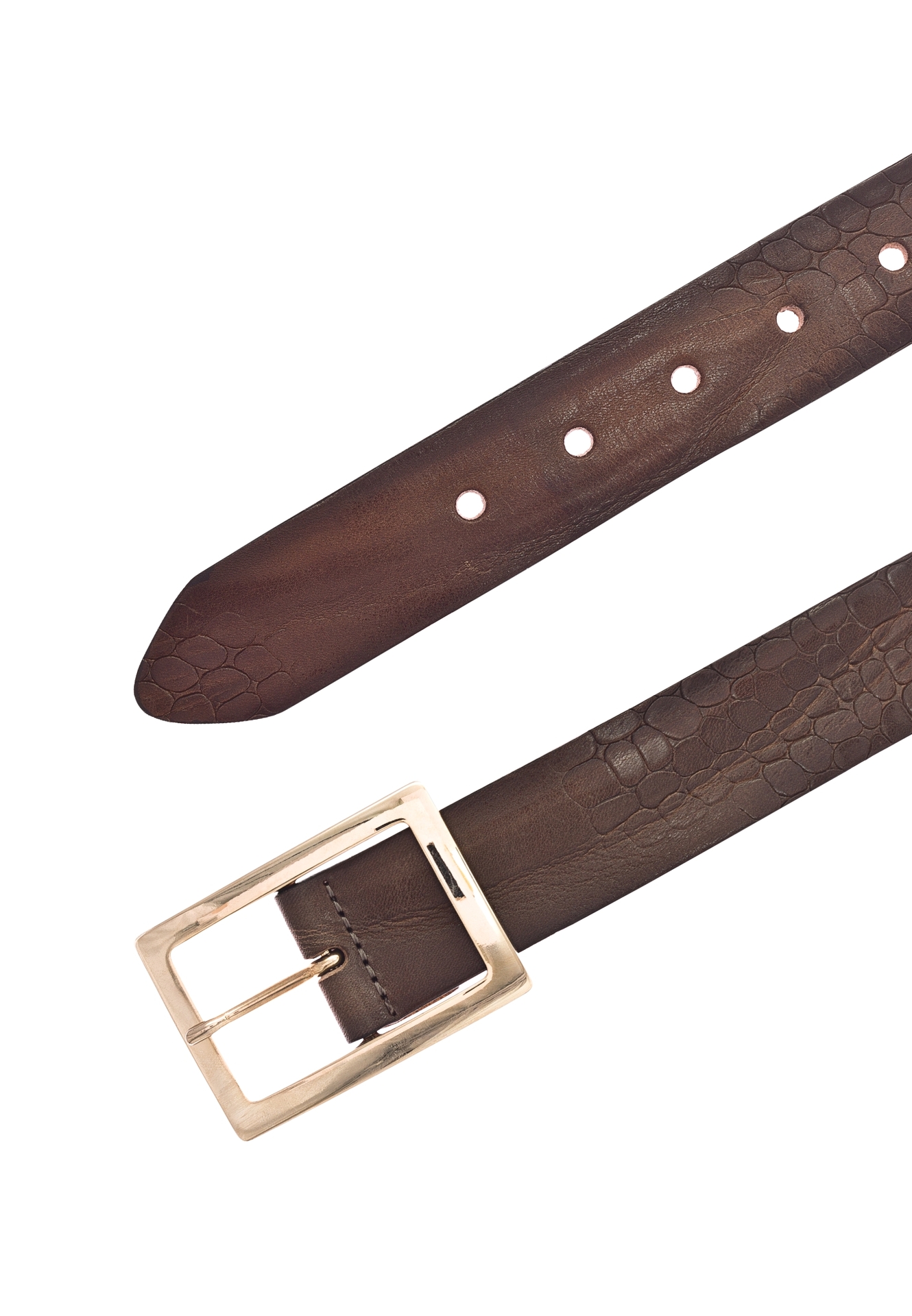 Ein echter Hingucker ist der stilvolle Damengürtel von Vanzetti mit feiner Musterung und länglicher Schnalle.