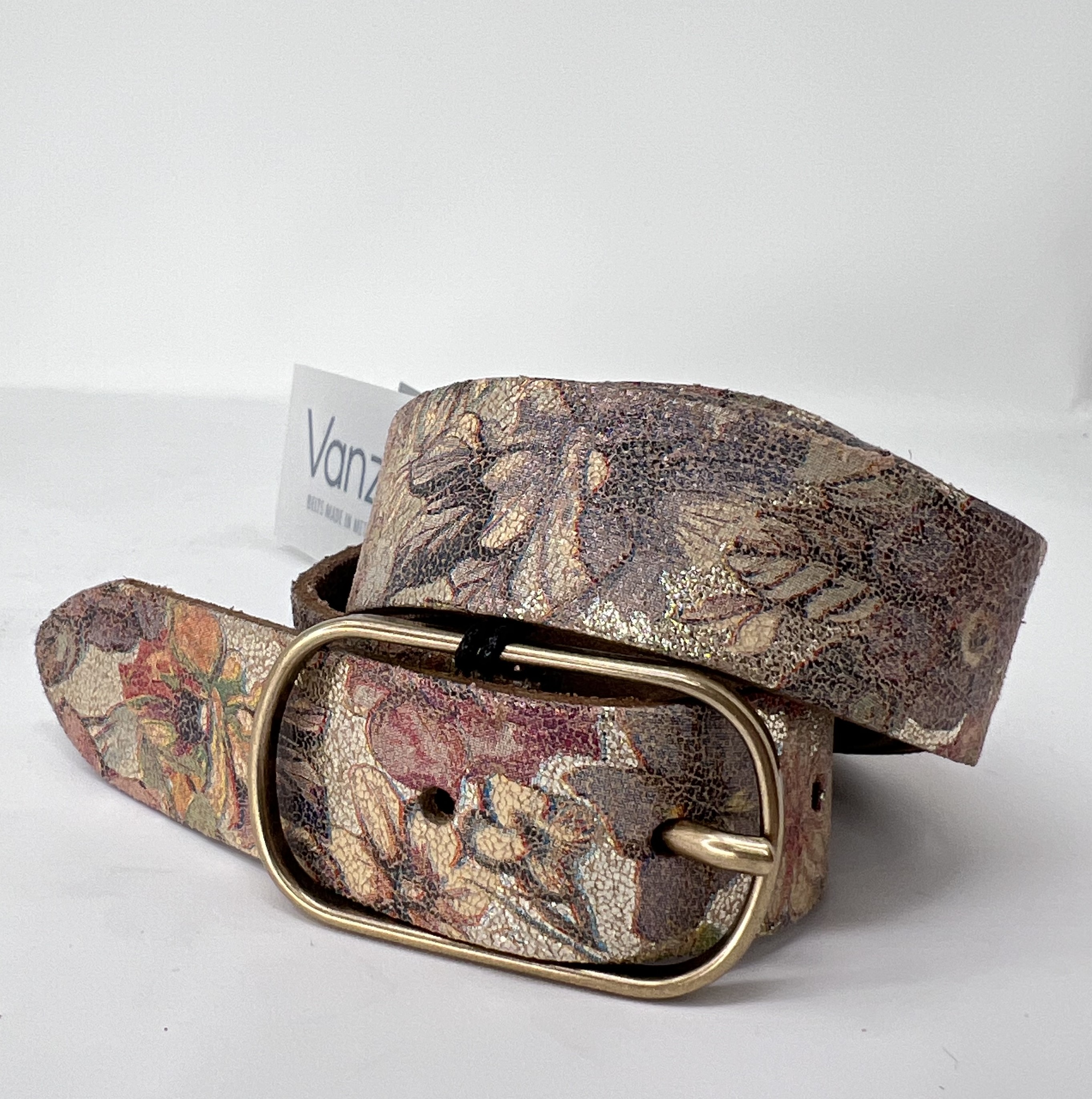 Hochwertiger Glattleder Damen Gürtel von Vanzetti im ansprechenden Blumenmuster.