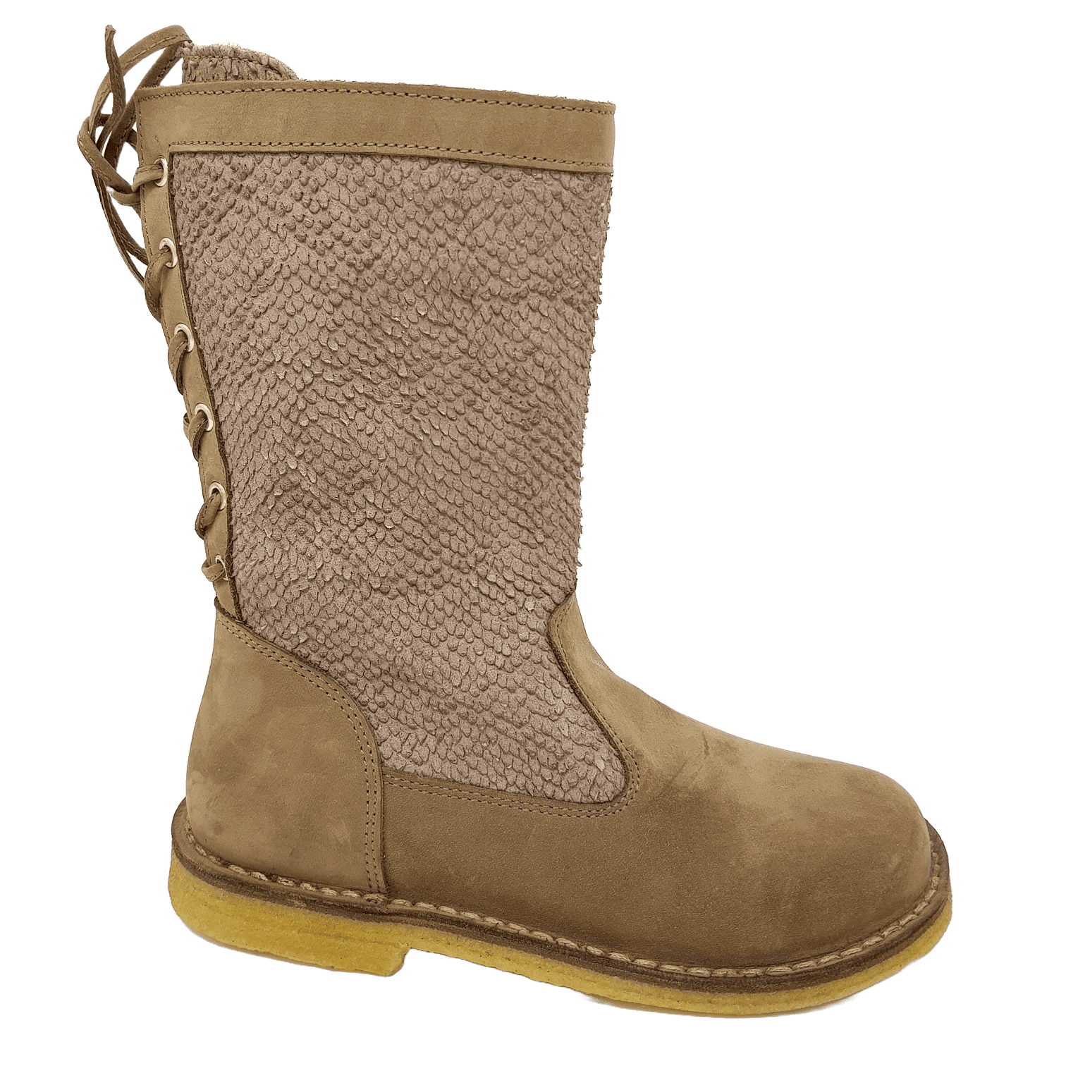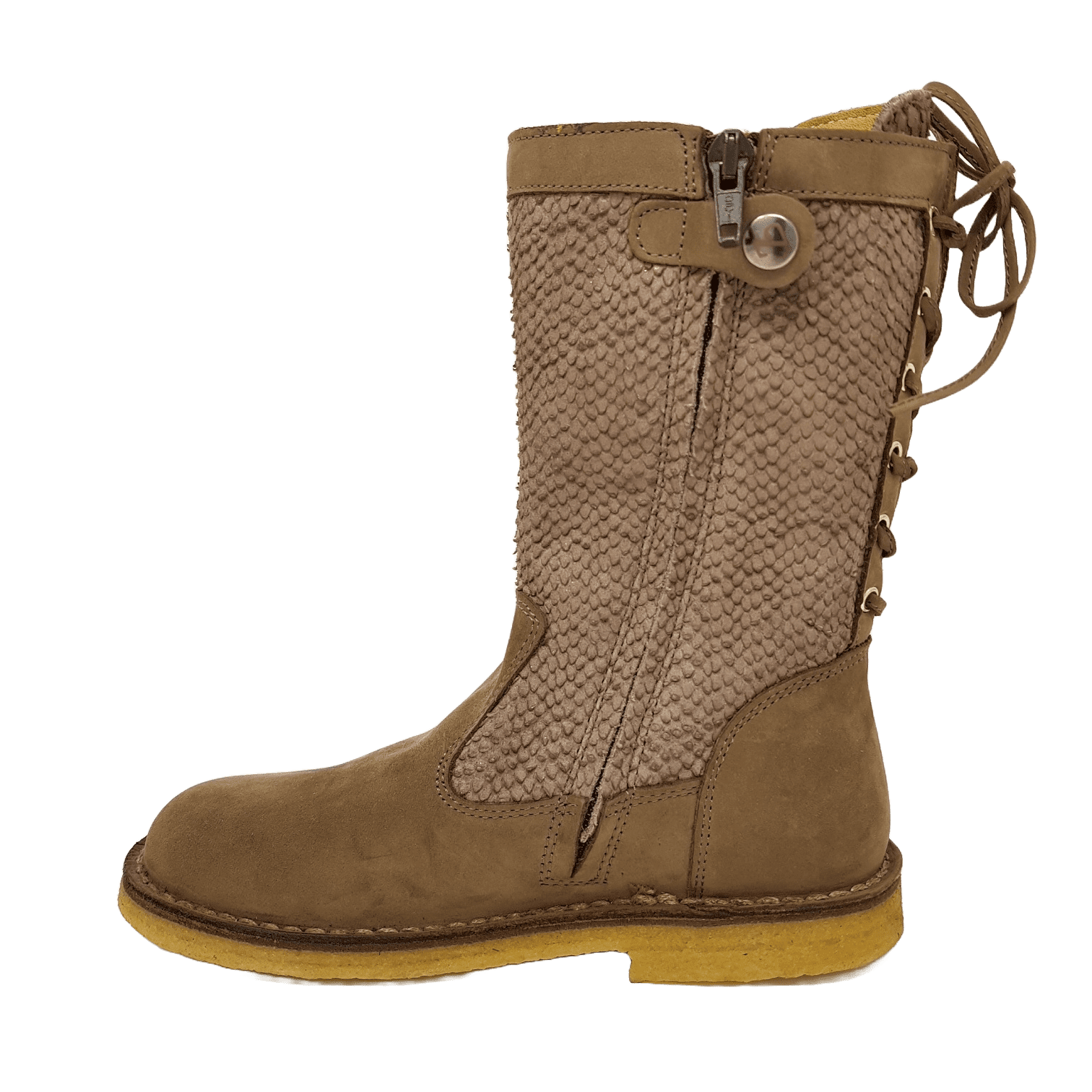 Interessant ist die Schnürung hinten am Stiefel und das Krokuleder am Schaft.