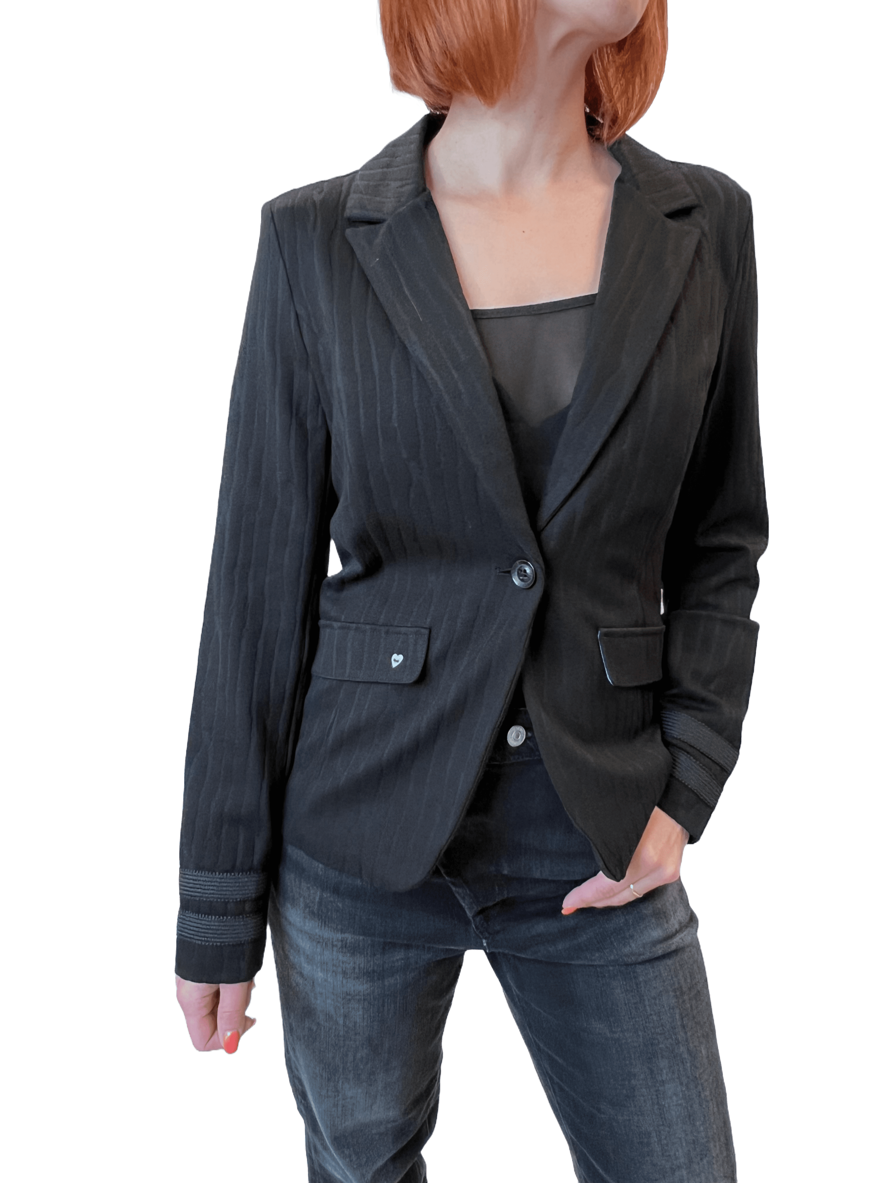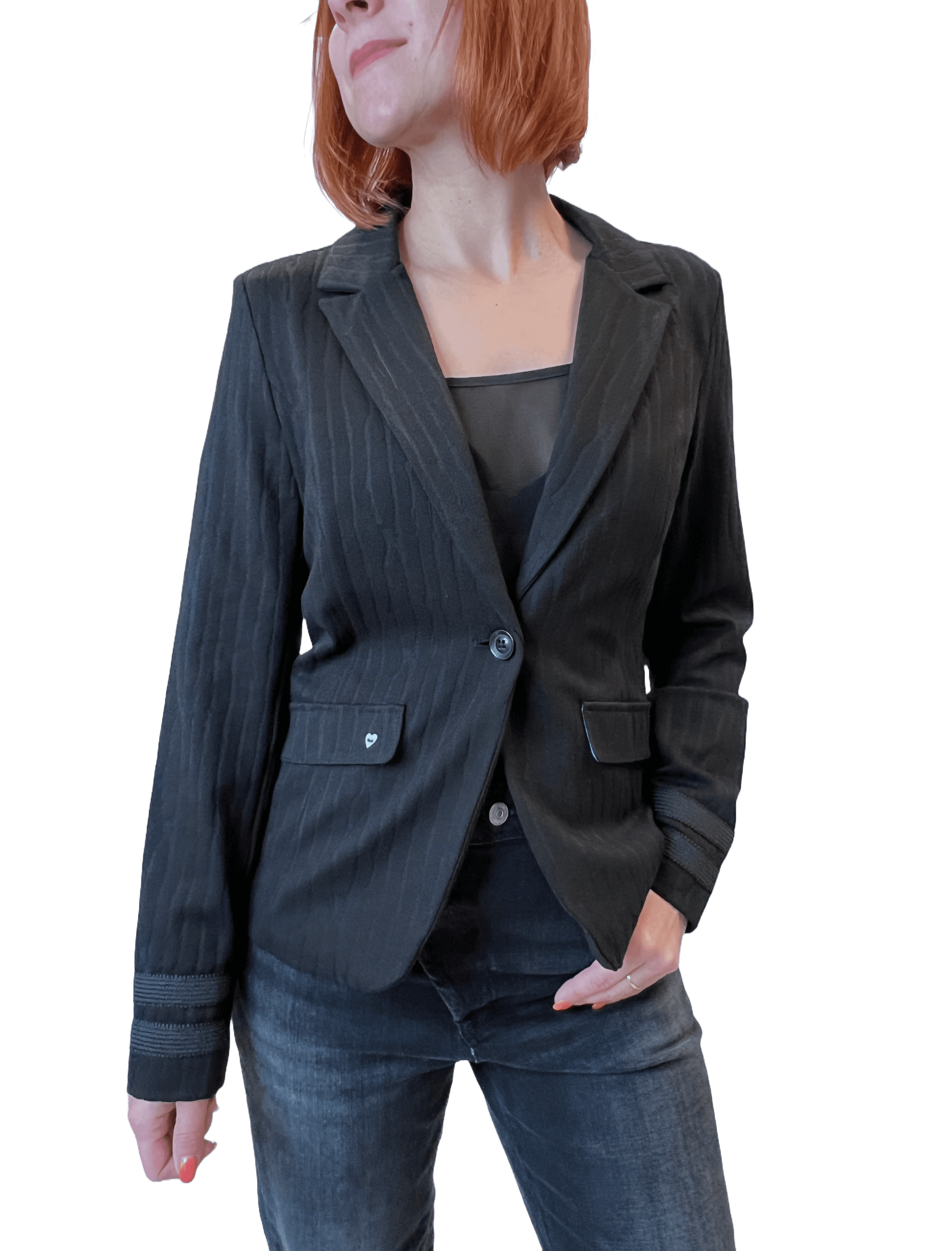 Dieser Blazer Betsy von Zhirll ist in einem leicht strechtigem Material gefertigt und somit sehr bequem. Tolle Optik durch den Reverskragen und die taillierte Passform.