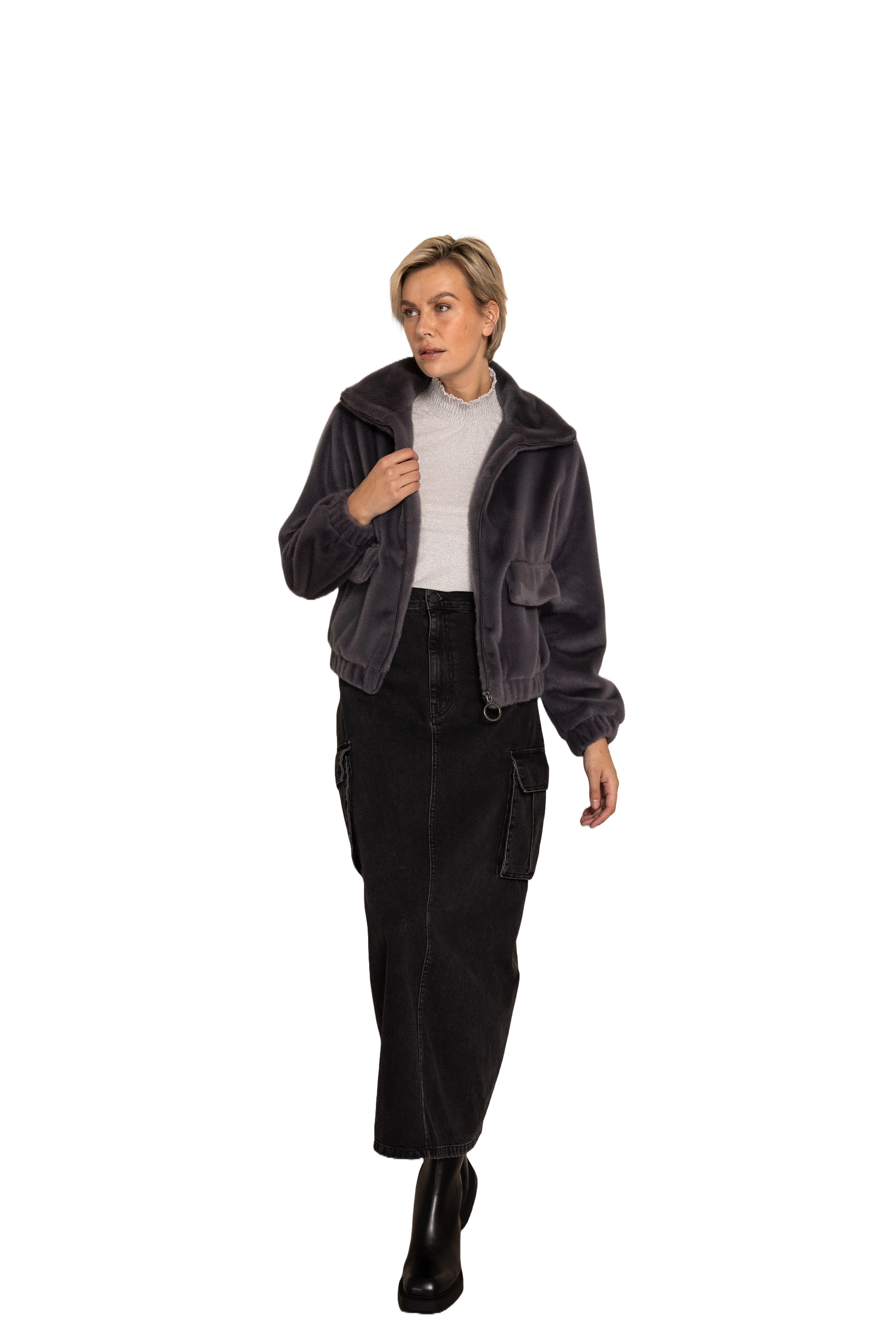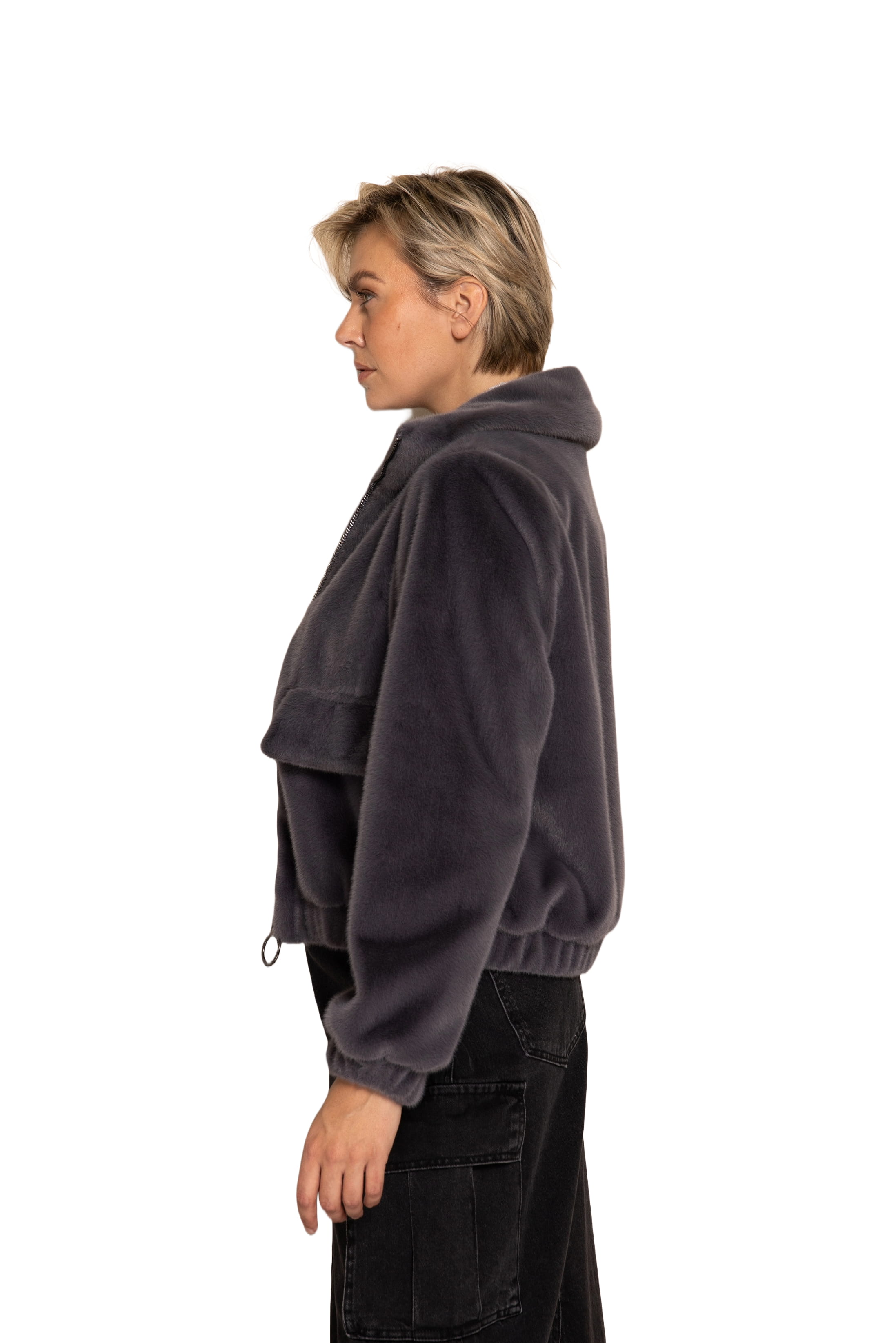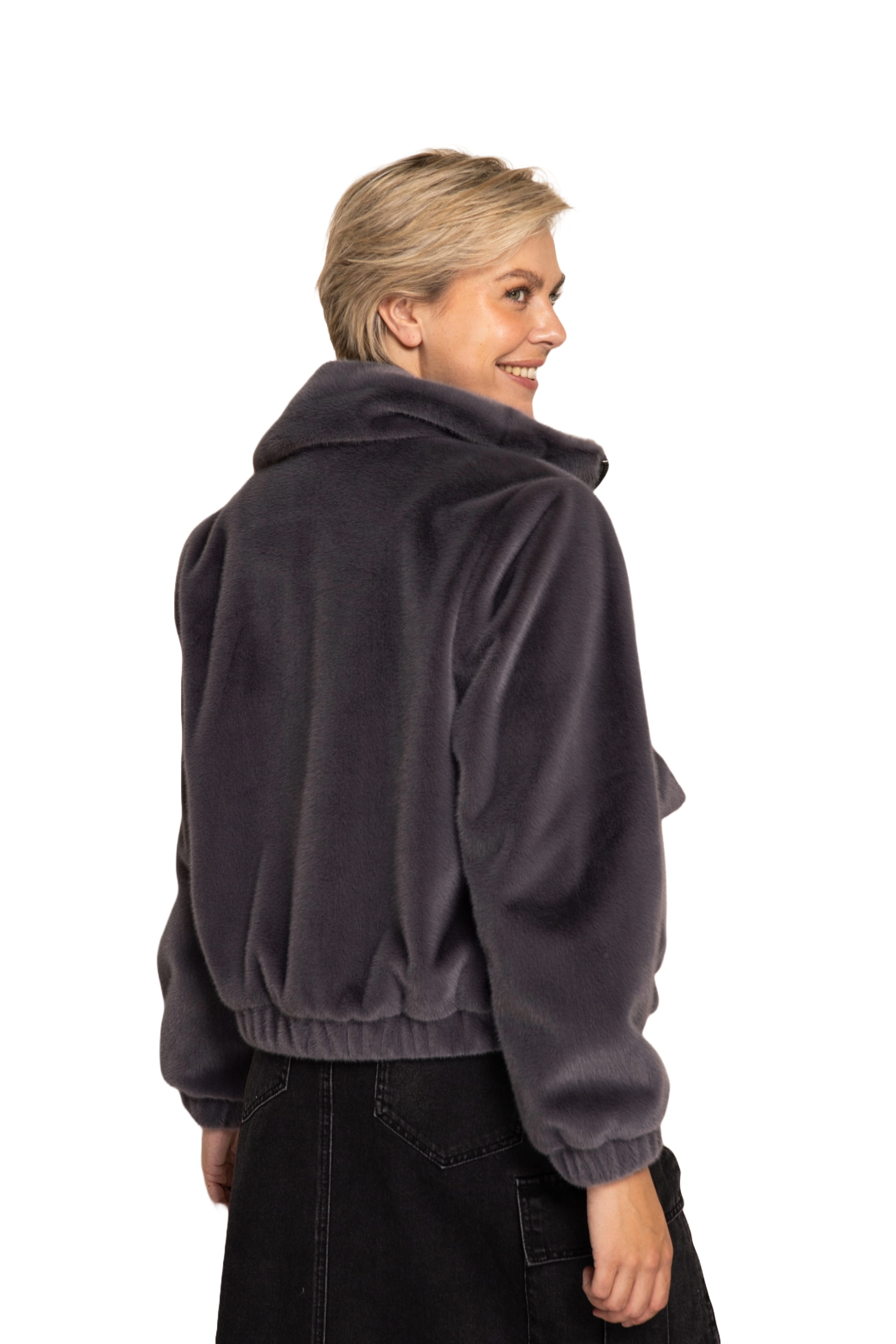 Das weiche Kunstfell fühlt sich angenehm auf der Haut an und verleiht dem Modell eine hochwertige Optik. Der Reißverschluss mit dekorativem Ring-Zipper setzt einen modernen Akzent.