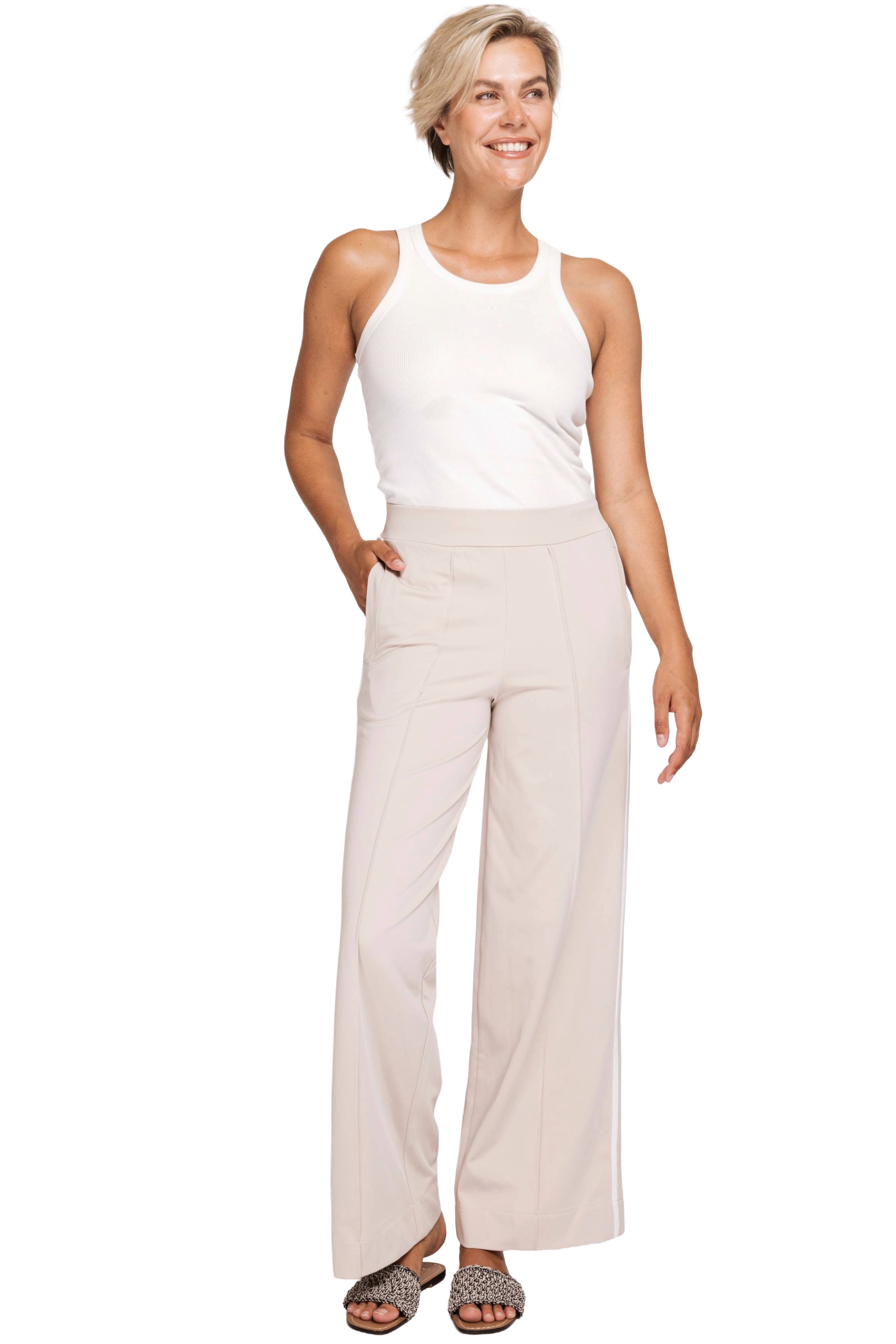 Die Damen Hose "Deena" von Zhrill überzeugt mit moderner Eleganz! Der elastischer Bund sorgt für angenehmen Tragekomfort, während das weite, bodenlange Bein für eine fließende Silhouette steht.