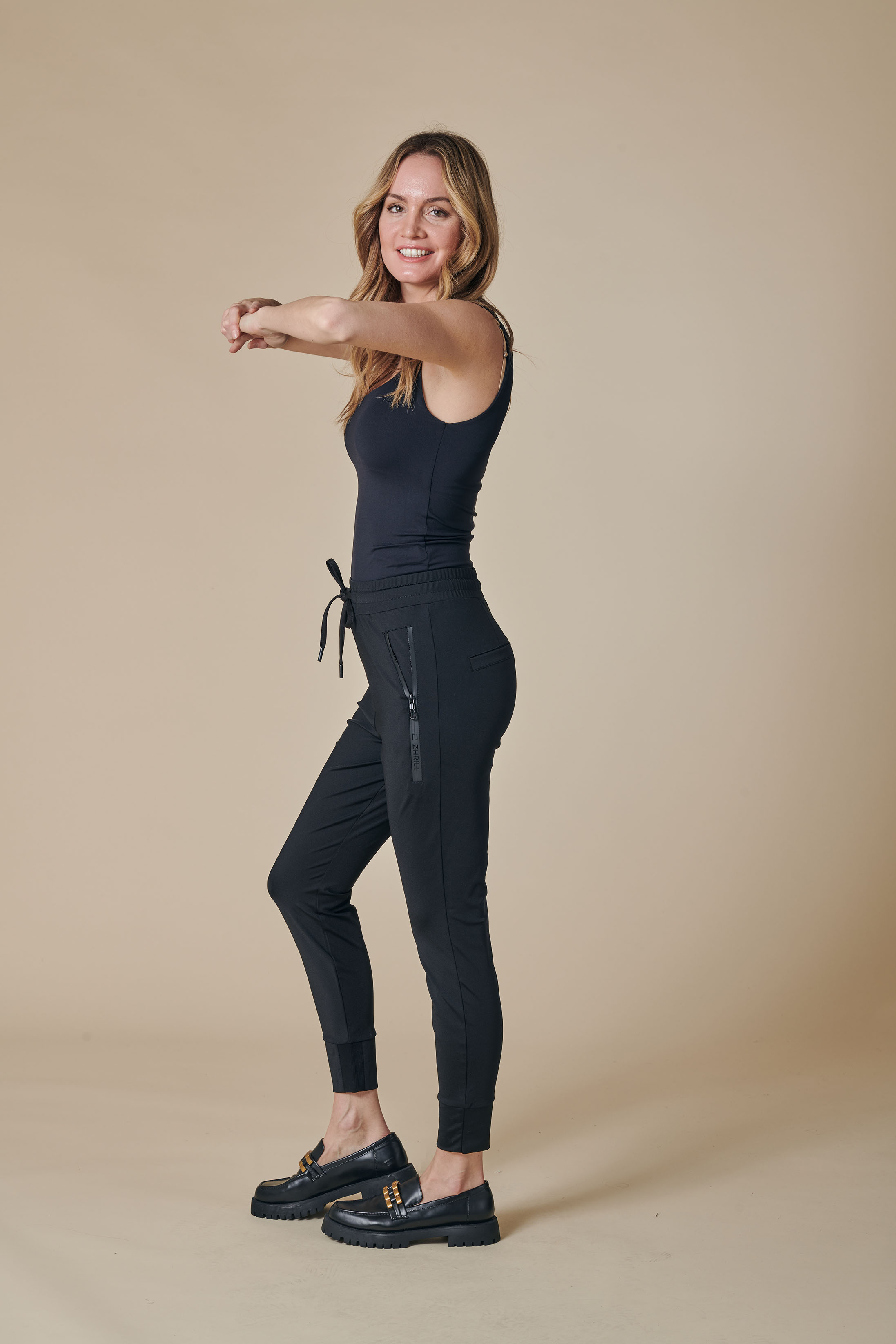 Das Besondere an dieser feinen Damen Jogg Hose Fabia, ist der fließend, dünne und angenehme Stoff.