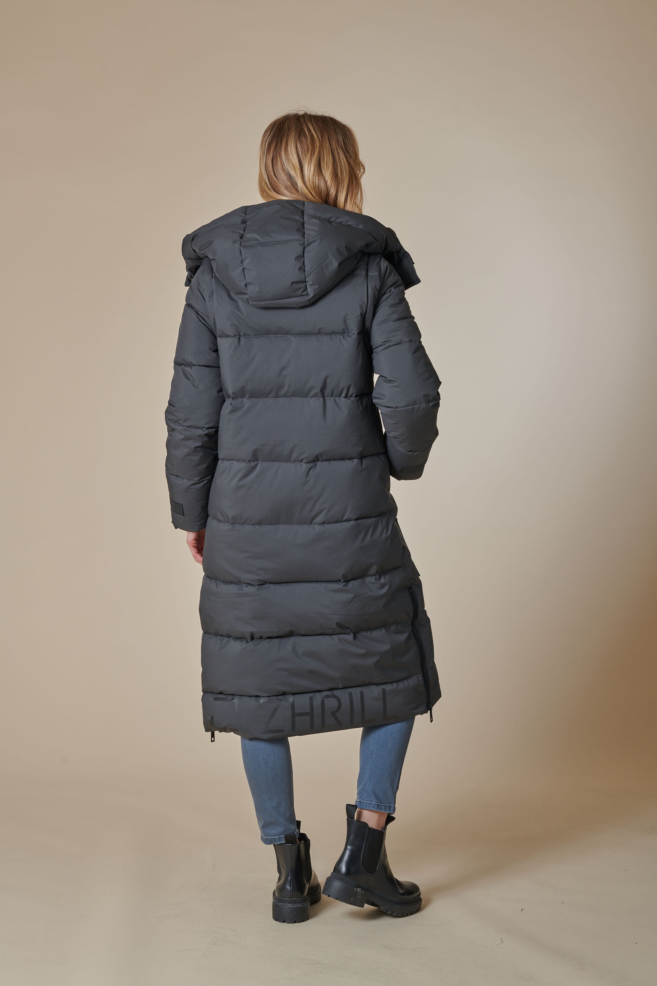Tolle Details wie das Zhrill Logo auf dem Innenfutter, der Kaputze, an den Metalösen, an den Zippern und richtig toll kommt es auch mit dem Logo hinten am unteren Saum an