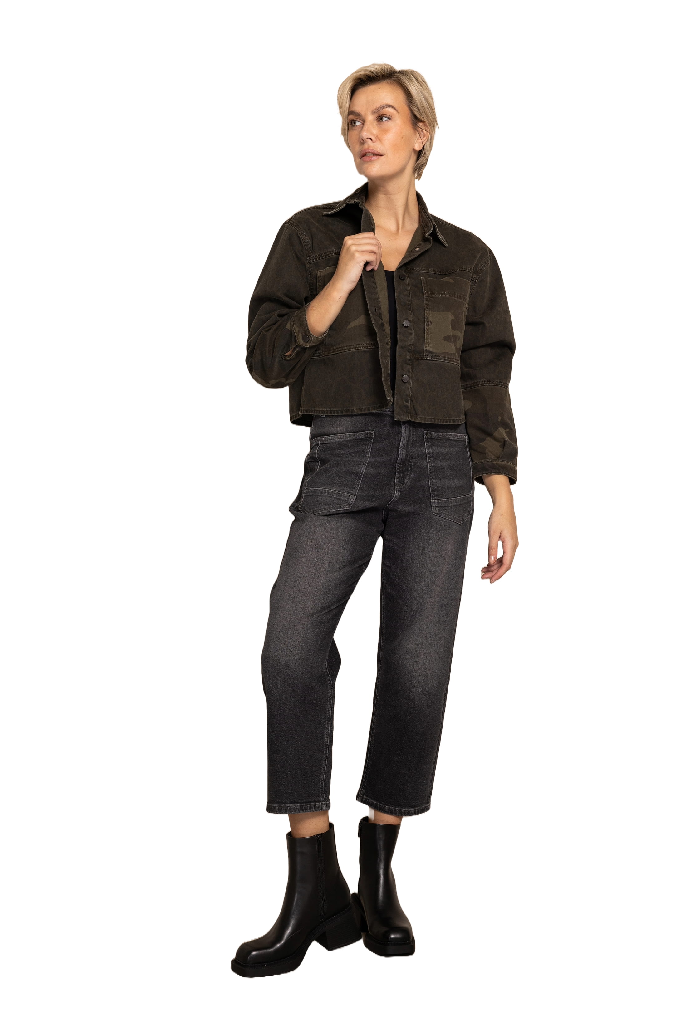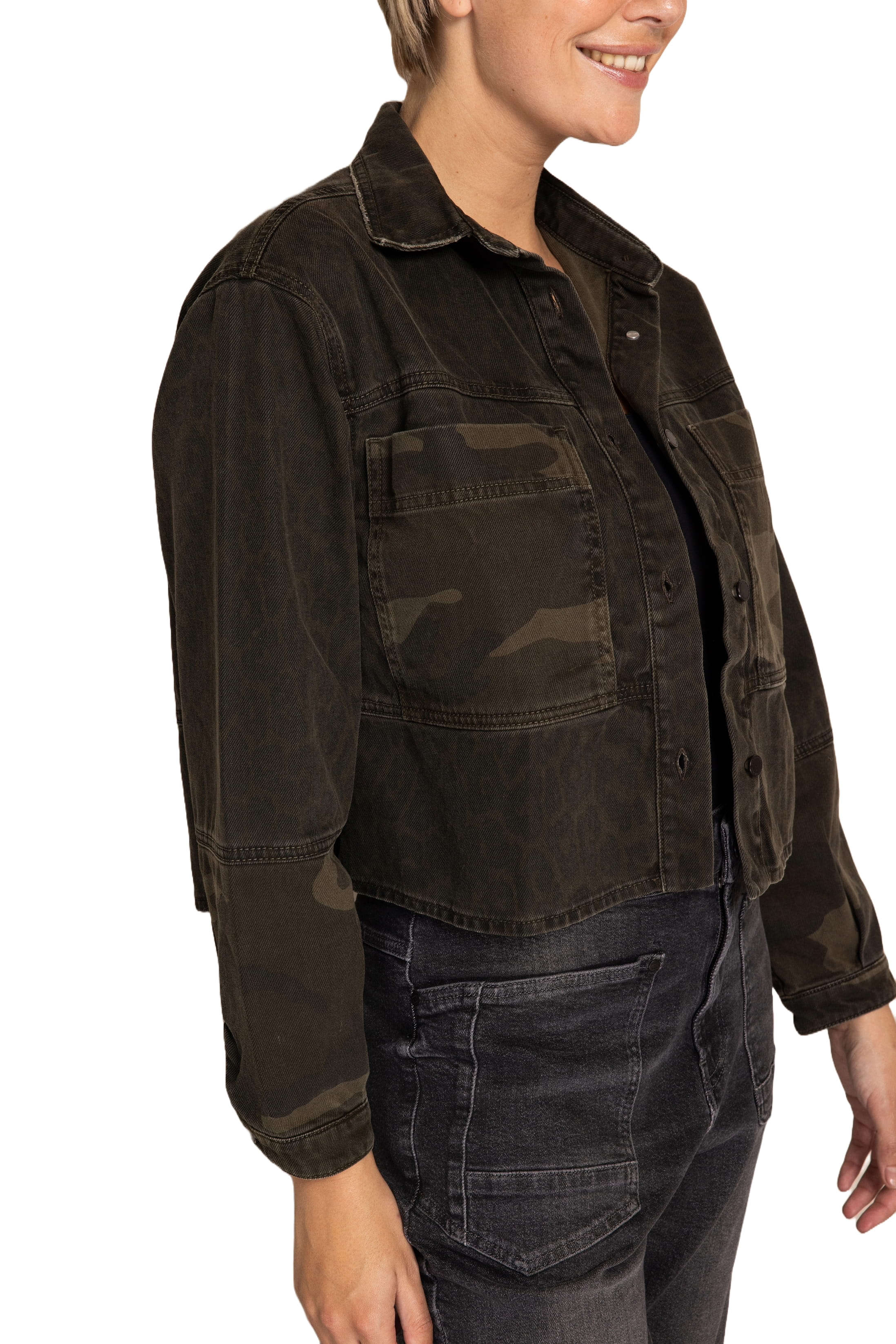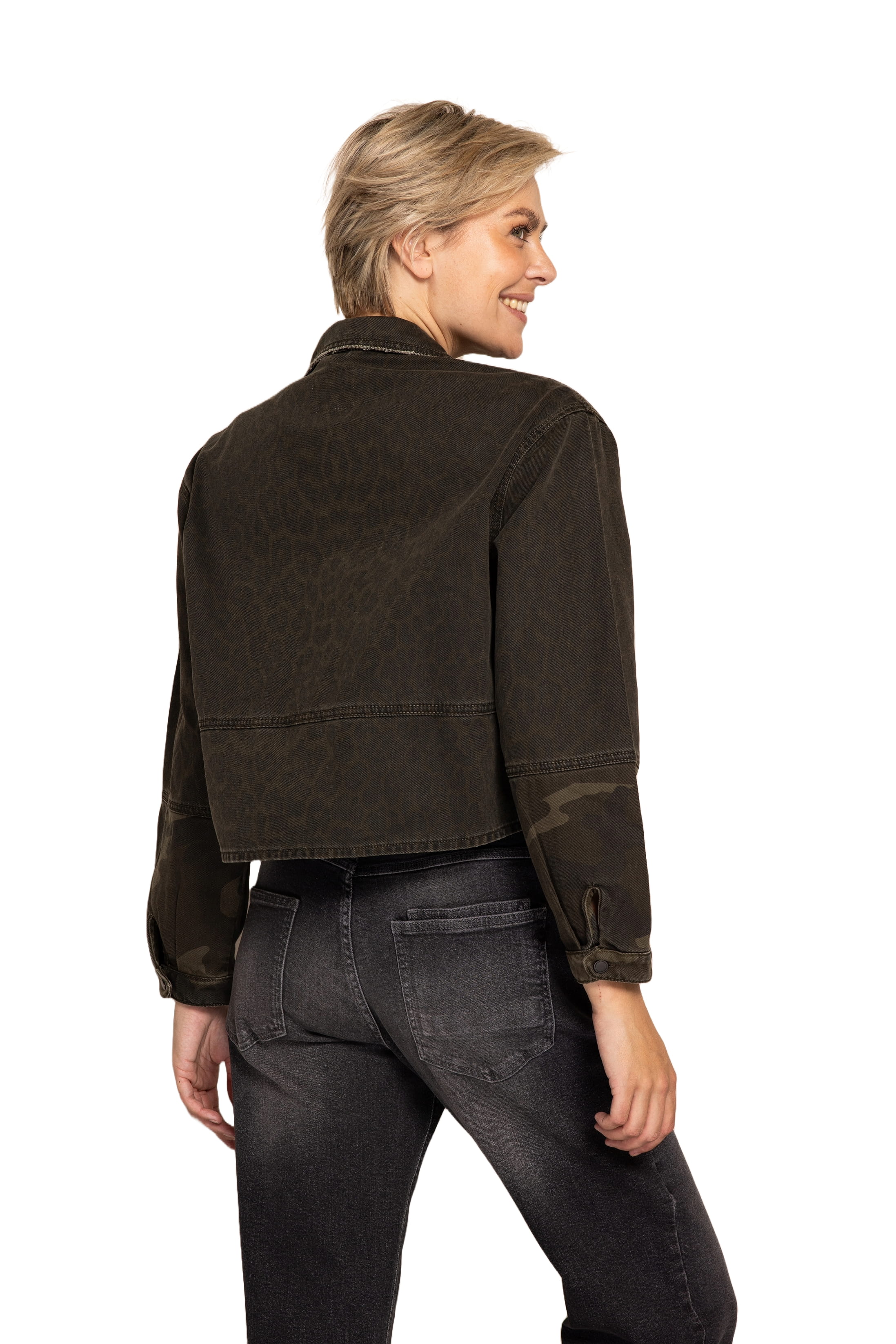 Die Damen Jacke "Louie" von Zhrill setzt auf lässige Silhouette und auffällige Details. Der angesagt Mix aus Leo-Print und Camouflage kommt im modernen Patchwork Style besonders gut zur Geltung.