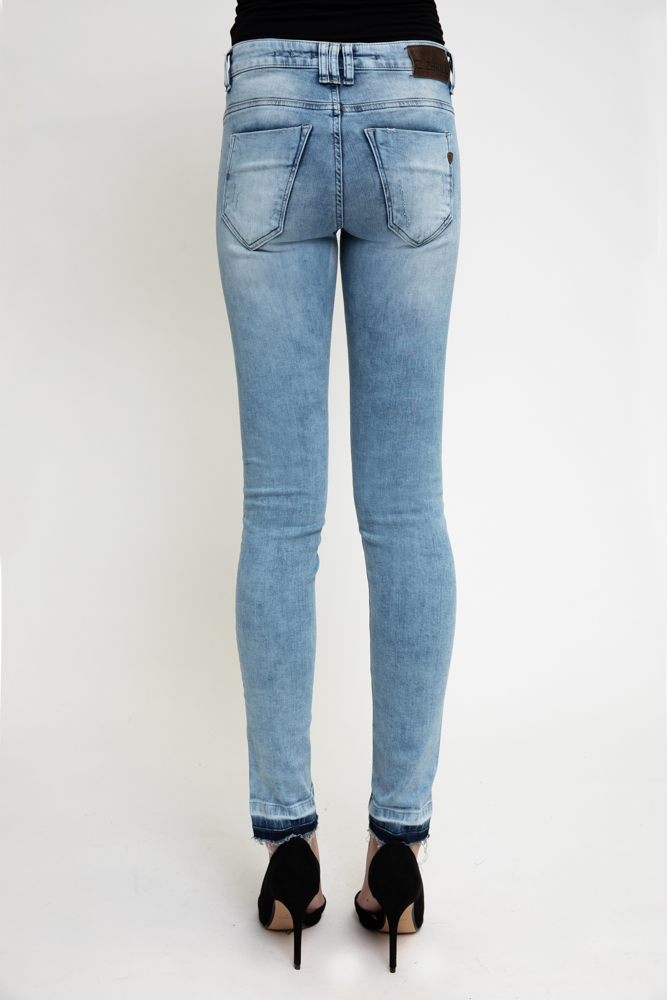 Damen Jeans Mia Shift von Zhrill in der Passform skinny. Die eng geschnittene Hose hat mehrere Taschen und offene, leicht ausgefranste Beinabschlüsse. Die tolle helle Waschung lässt sich wunderbar kombinieren und wertet jeden Look auf.