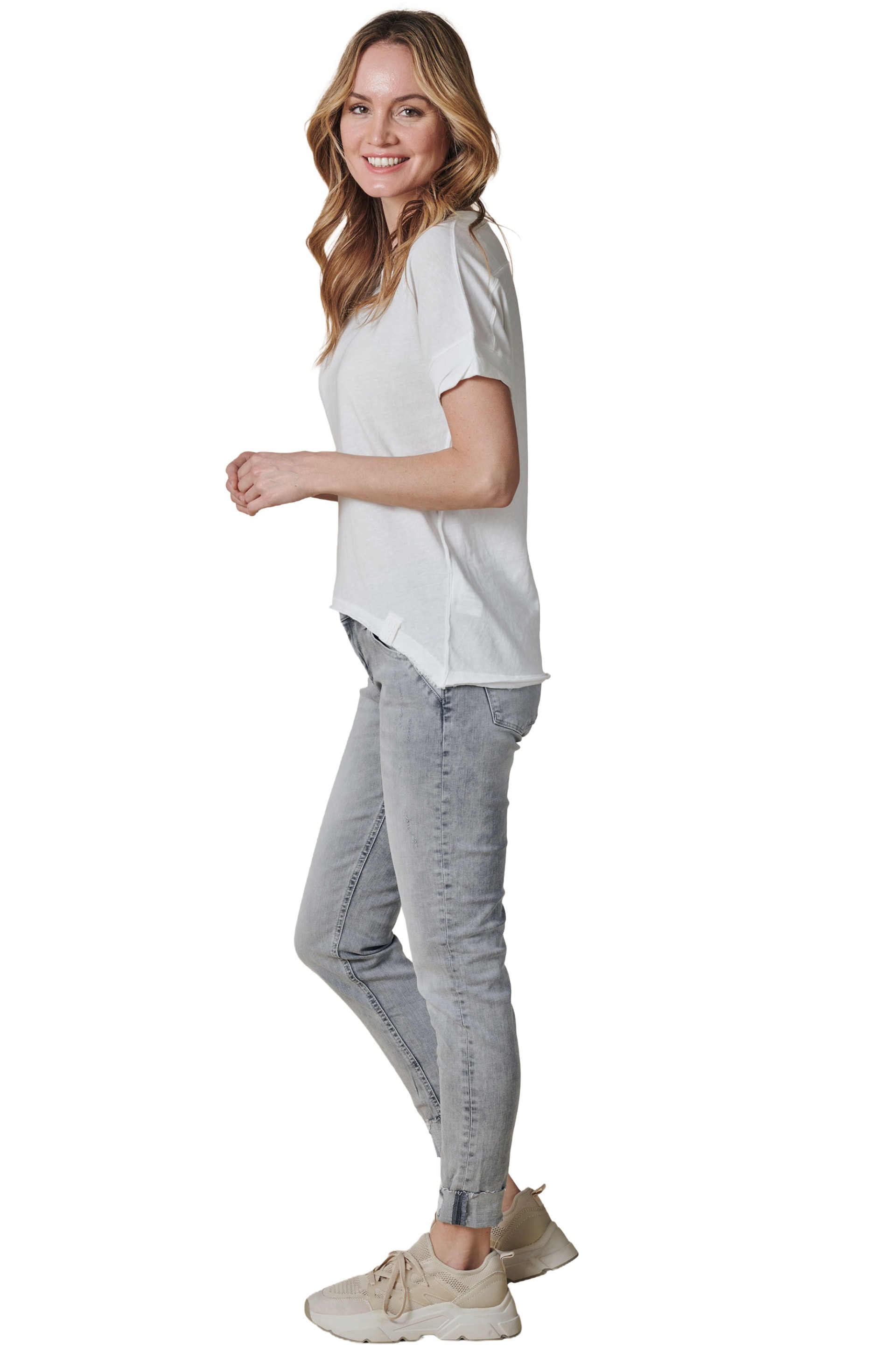 Das "Rahel" Damen T-Shirt von Zhrill überzeugt mit reduziertem Design und entspannter Silhouette. Der locker geschnittene Regular Fit sorgt für eine angenehme Weite und hohen Tragekomfort. Das weiche, fließende Material macht das Shirt zu einem unkompliziertem Alltagsbegleiter.